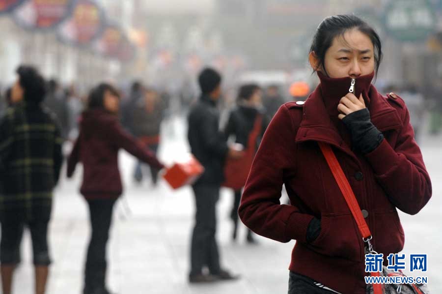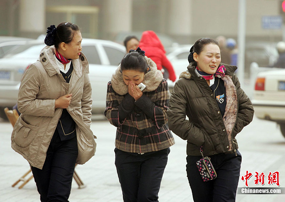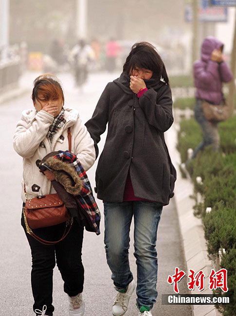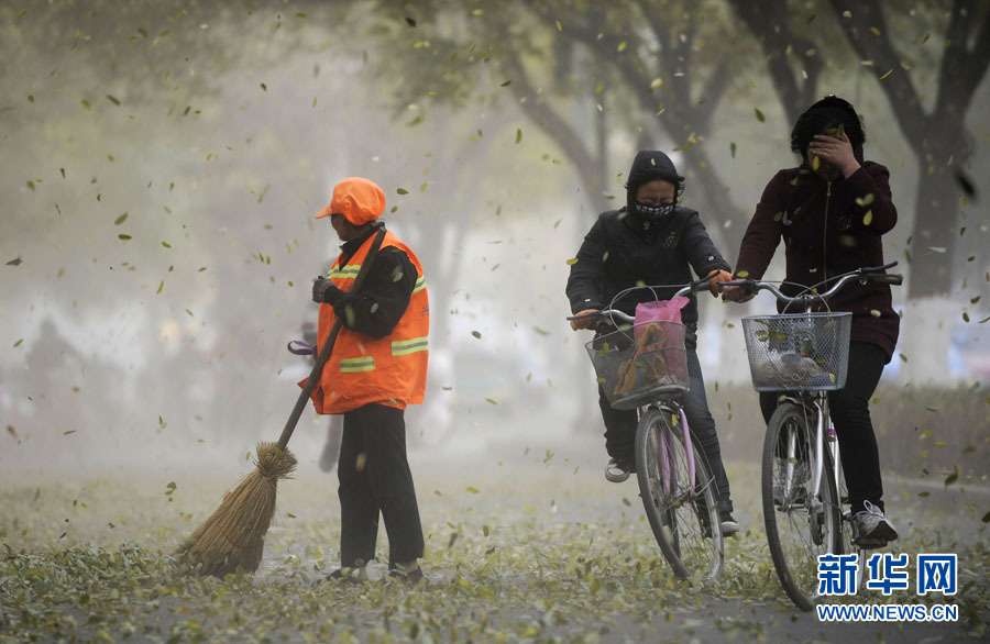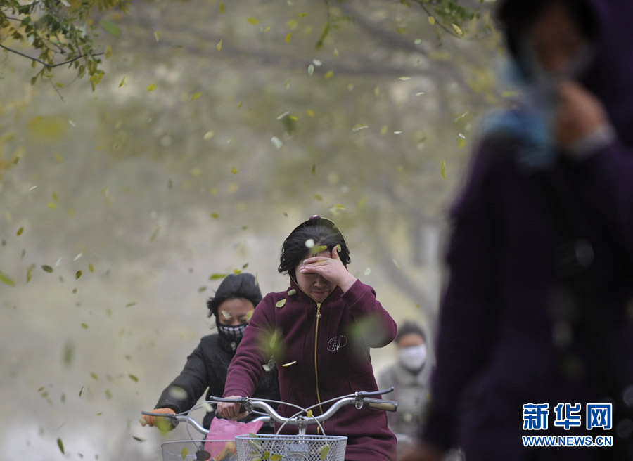 11月11日,濰坊市民在黃沙籠罩中艱難出行。當(dāng)日,一股從西北來的冷空氣開始影響山東省,同時山東省氣象臺發(fā)布了海上大風(fēng)黃色預(yù)警,西北風(fēng)裹著沙塵吹在臉上著實讓人難受。圖片來源:CNSPHOTO 張馳 攝
