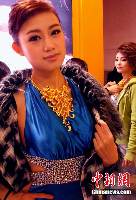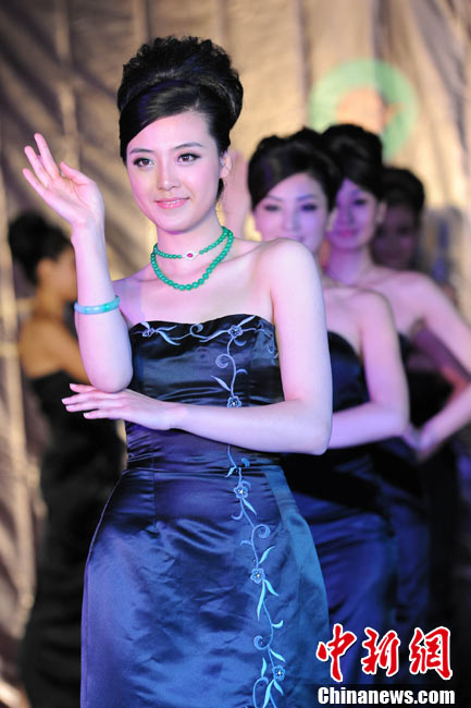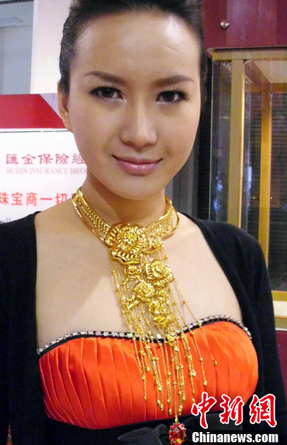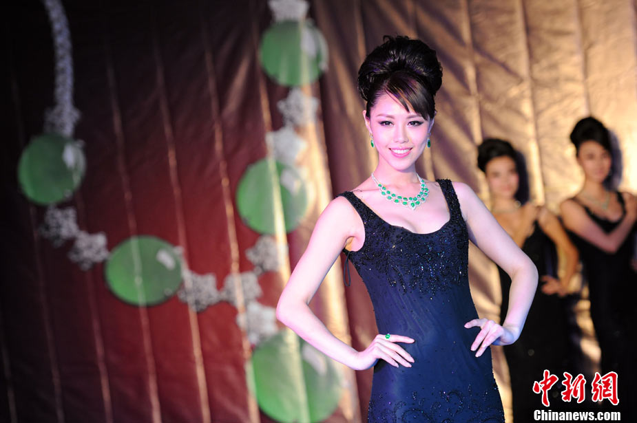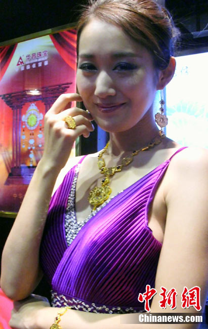 11月11日,2010中國國際珠寶展在北京中國國際展覽中心開幕,本屆展會規(guī)模42000平方米,近2000個展位,有來自22個國家和地區(qū)的961家企業(yè)參展,展覽面積比去年同期擴大了40%。圖為2010中國國際珠寶展上模特展示珠寶首飾。中新社記者 錢興強 攝