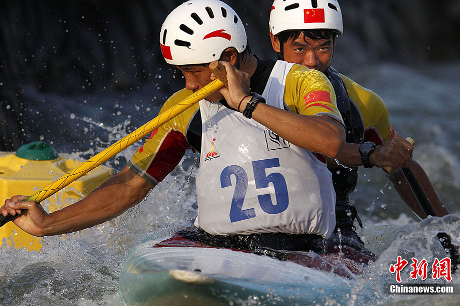 11月11日下午,中國(guó)隊(duì)女子單人選手在位于廣州市郊米崗的廣東國(guó)際劃船中心激流回旋賽道訓(xùn)練,力爭(zhēng)金牌。中新社記者 任晨鳴 攝