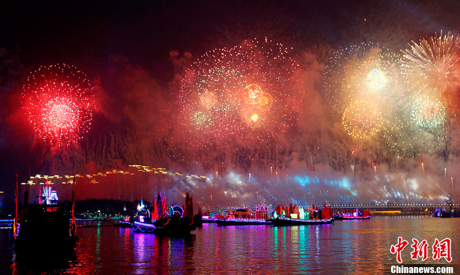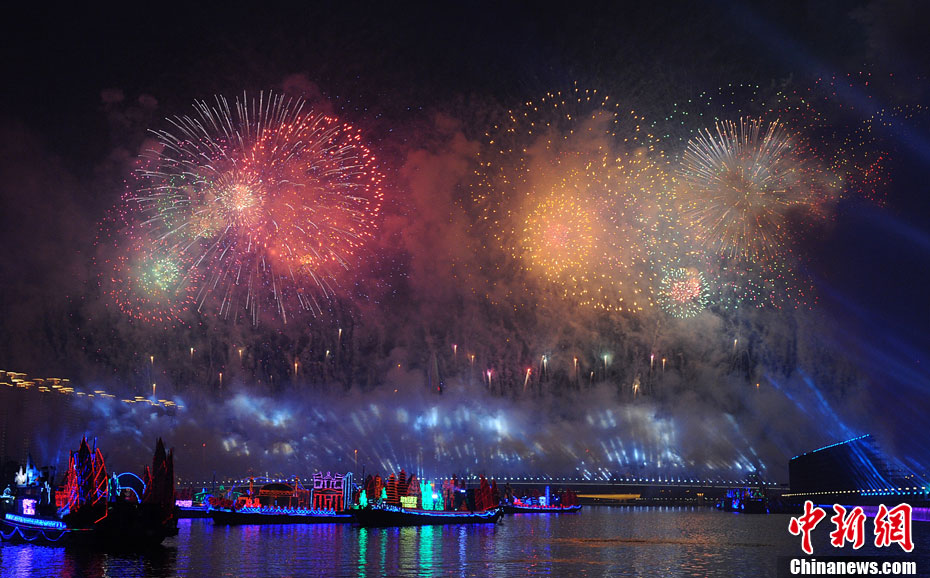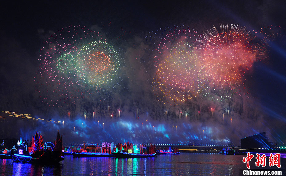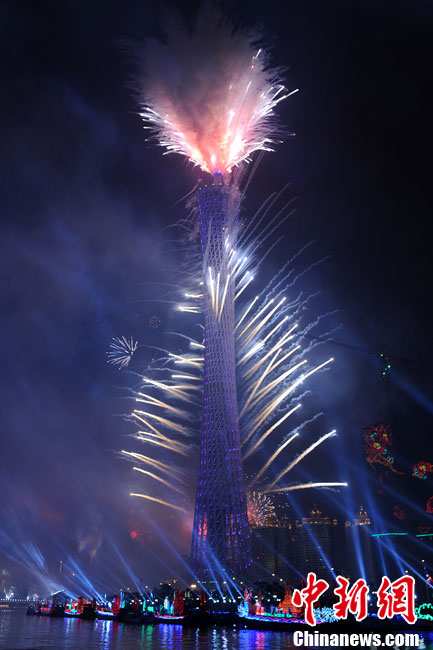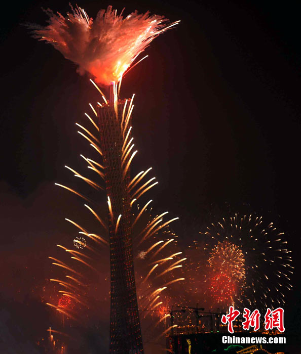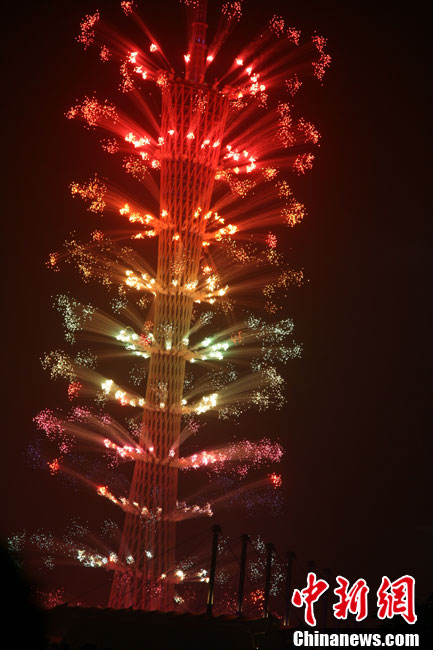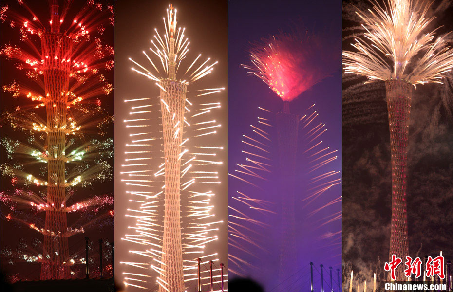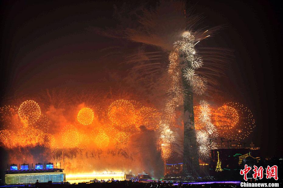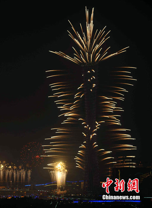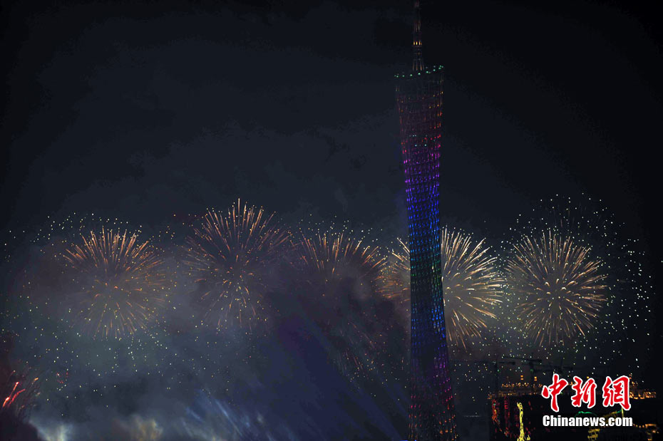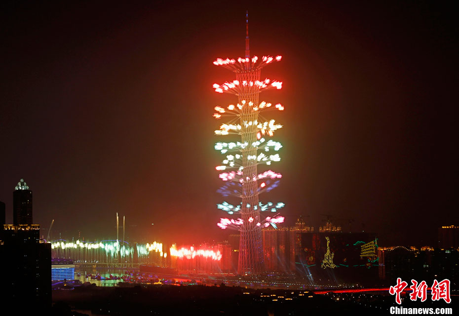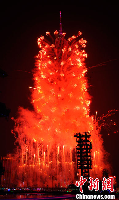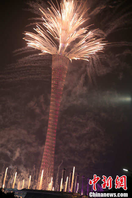 11月12日晚,第十六屆亞洲運動會在廣州開幕,16萬發(fā)煙花組成的美麗畫卷點亮了美麗珠江的夜空。