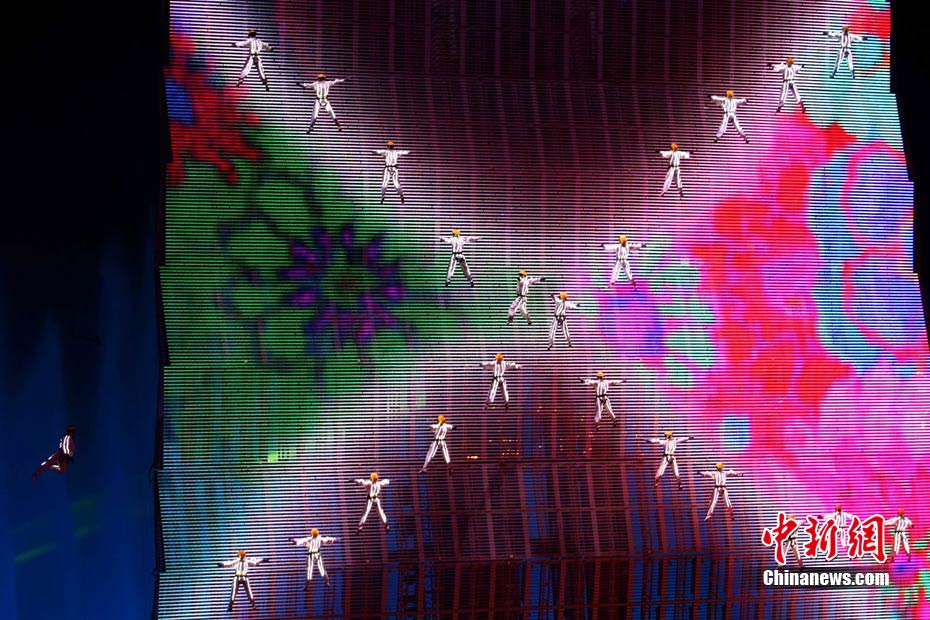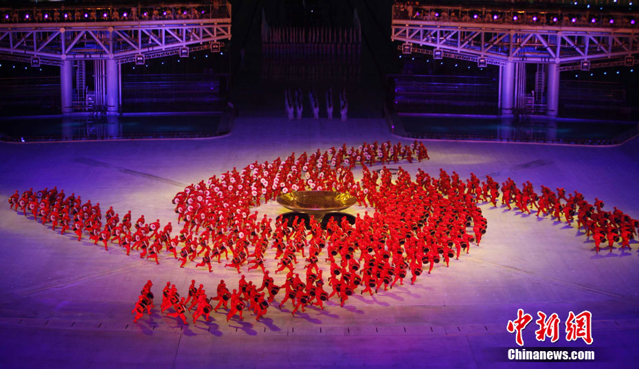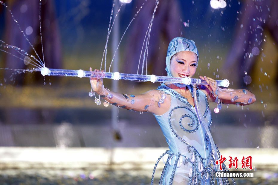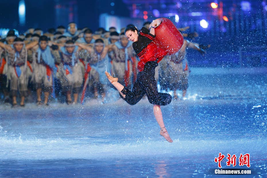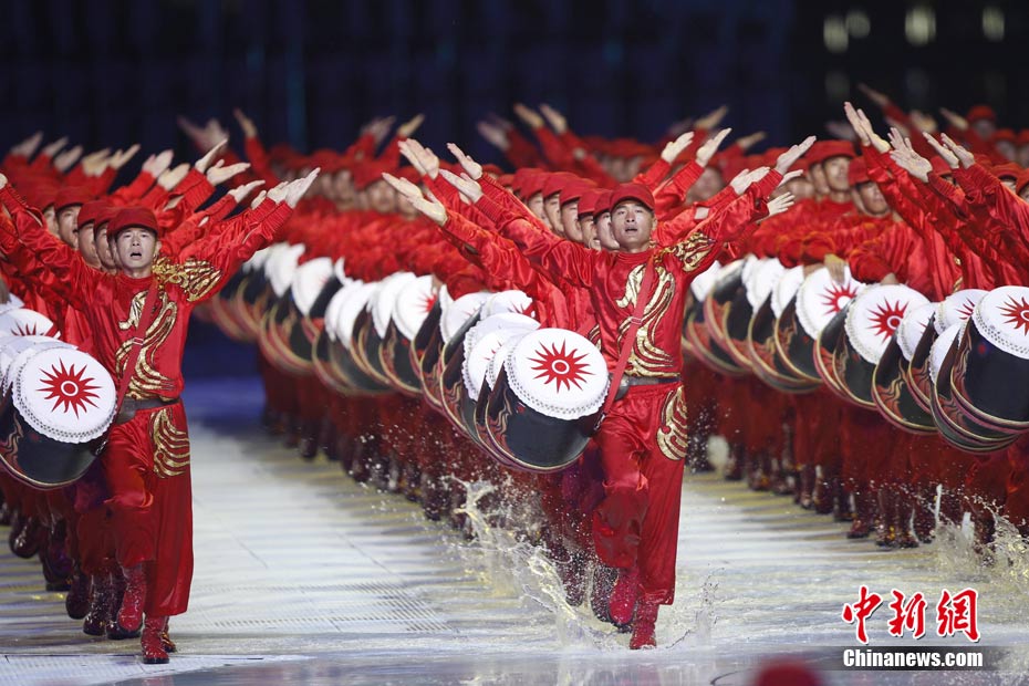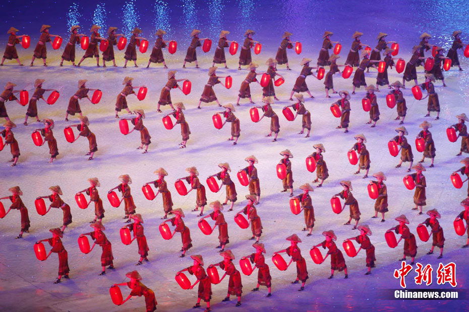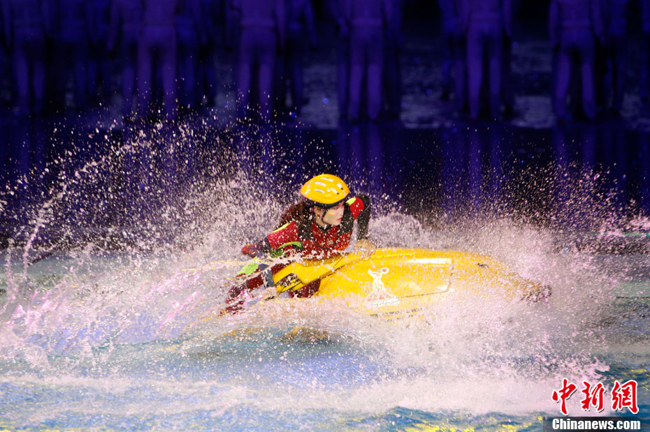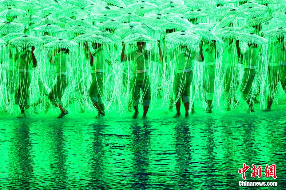 11月12日晚,第16屆亞運會開幕式在廣州海心沙舉行,宏大、絢麗的文藝匯演《啟航》給亞洲以及世界觀眾帶來藝術(shù)盛宴。水是廣州亞運開幕式最主要的創(chuàng)意元素,幕式的表演從一滴水到汪洋大海,從一葉扁舟到巨型帆船,從一汪情水到滔天巨浪。演員們用各種表演手段盡情展現(xiàn)水的魅力,表達水是生命之源、滋養(yǎng)萬物、呵護人類文明的精神內(nèi)涵,令人嘆為觀止。中新社記者 杜洋 攝