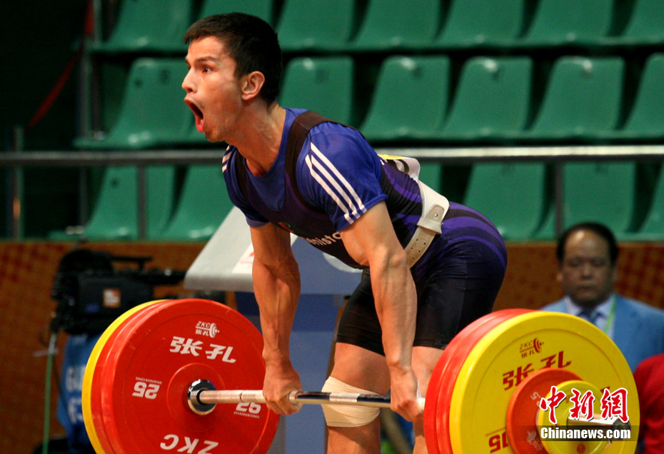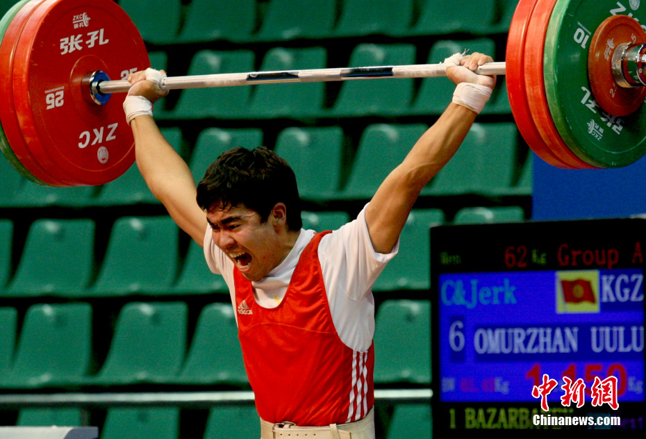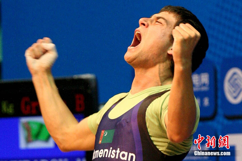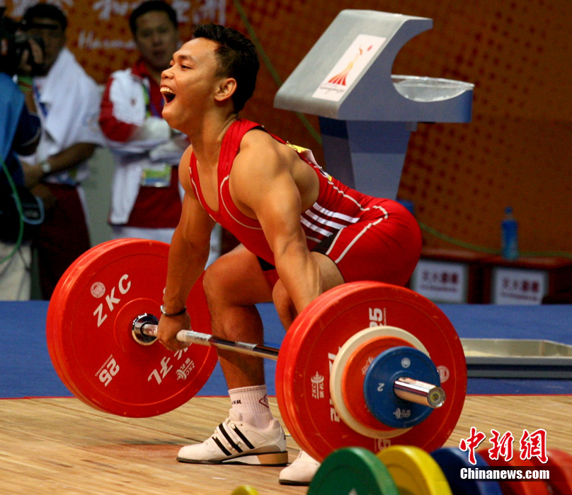 11月14日,廣州亞運會男子舉重62公斤級比賽在東莞體育館舉行,賽場上不斷傳出運動員大吼聲。大聲吼叫不但能為自己打氣,同時還能使胸腔腹腔壓力急劇升高,使上下肢和腰背肌有了更穩(wěn)定的支撐點,更容易取得好的成績,大吼已經(jīng)成為舉重比賽中最帥氣的一道風景。中新社記者 張茵 攝