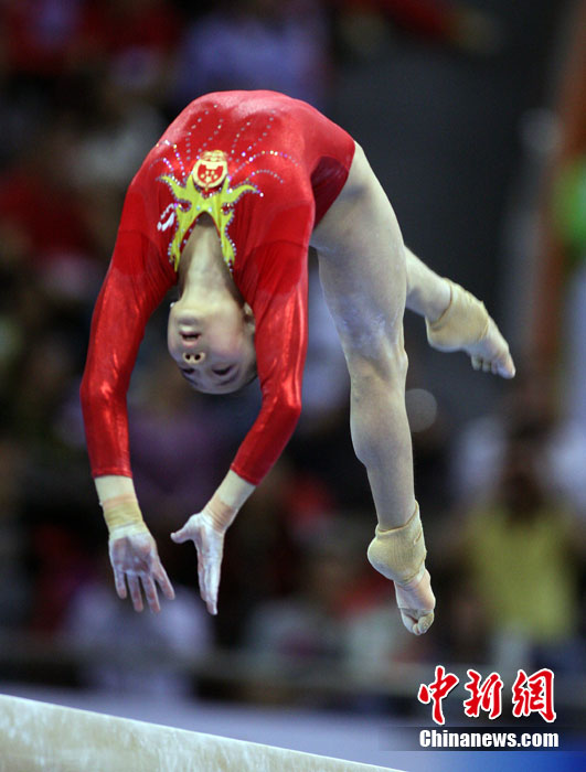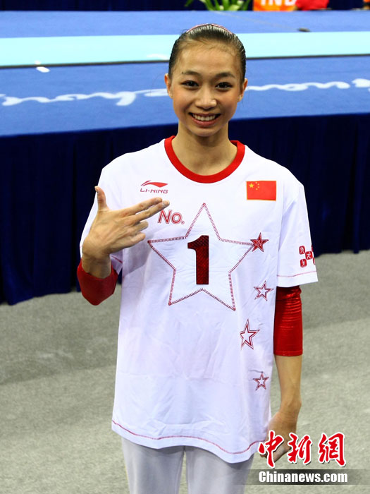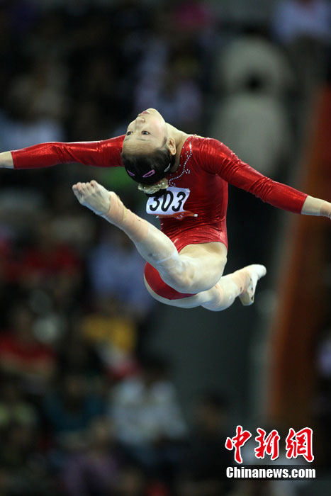 11月14日,在廣州亞運(yùn)會(huì)女子體操團(tuán)體決賽中,中國隊(duì)擊敗日本隊(duì)奪冠,實(shí)現(xiàn)了亞運(yùn)會(huì)的“十連冠”。中新社記者 富田 攝