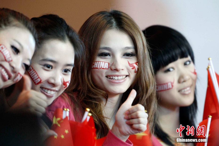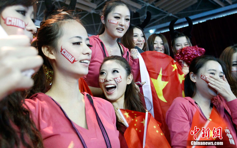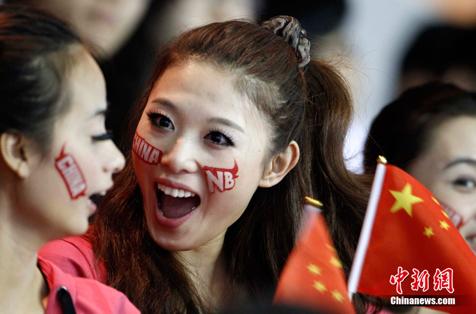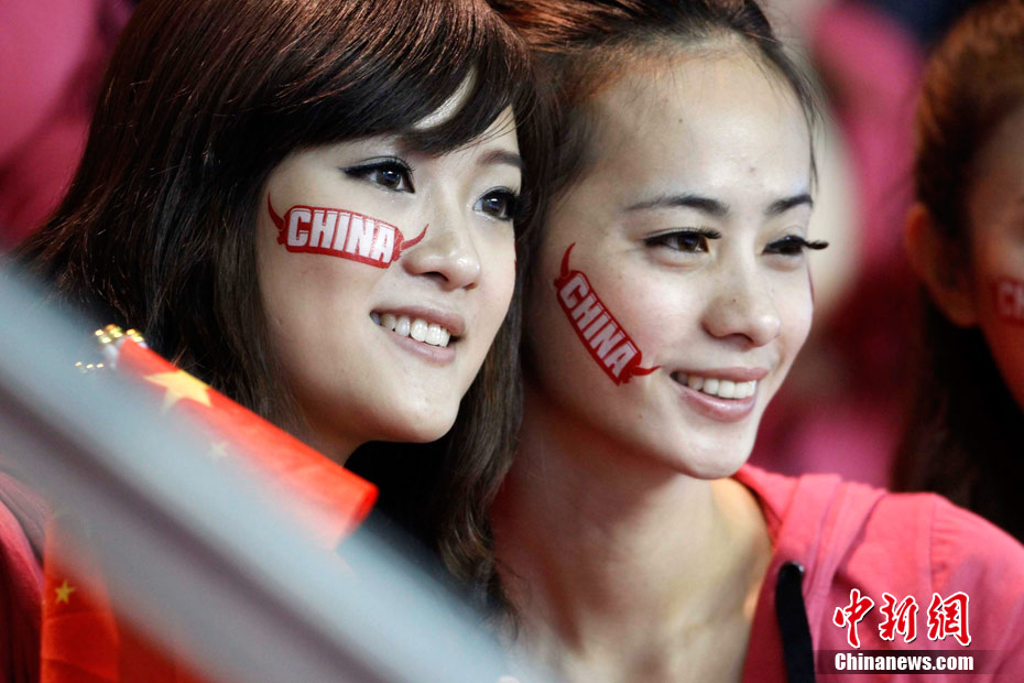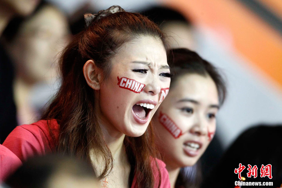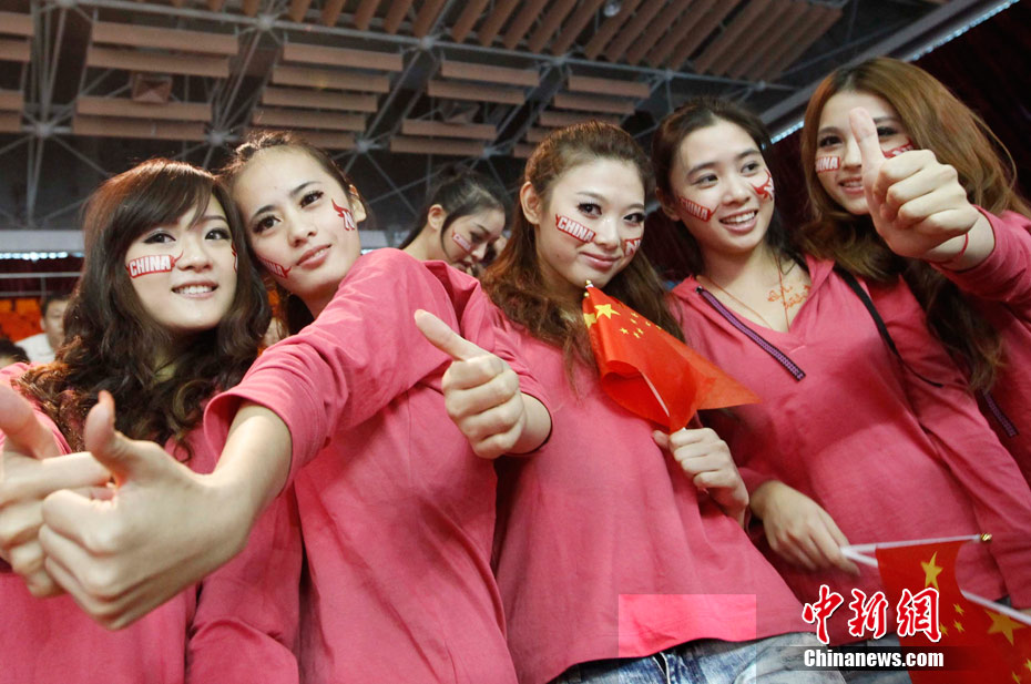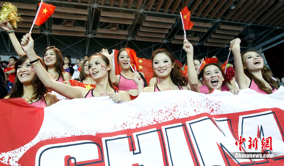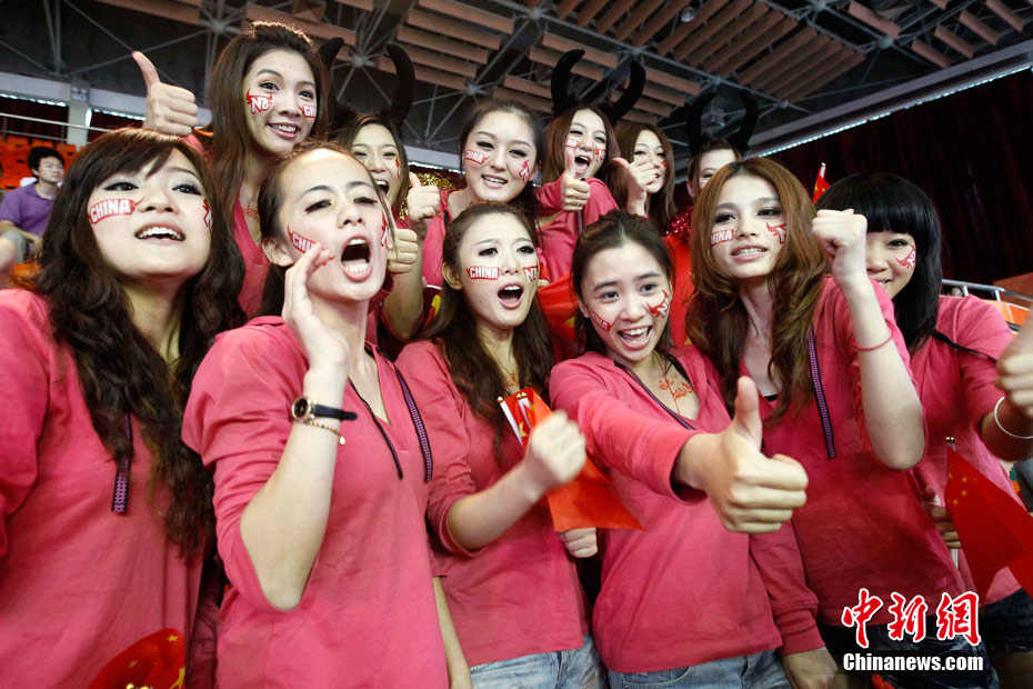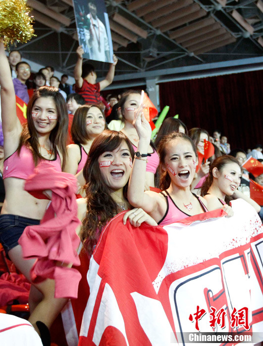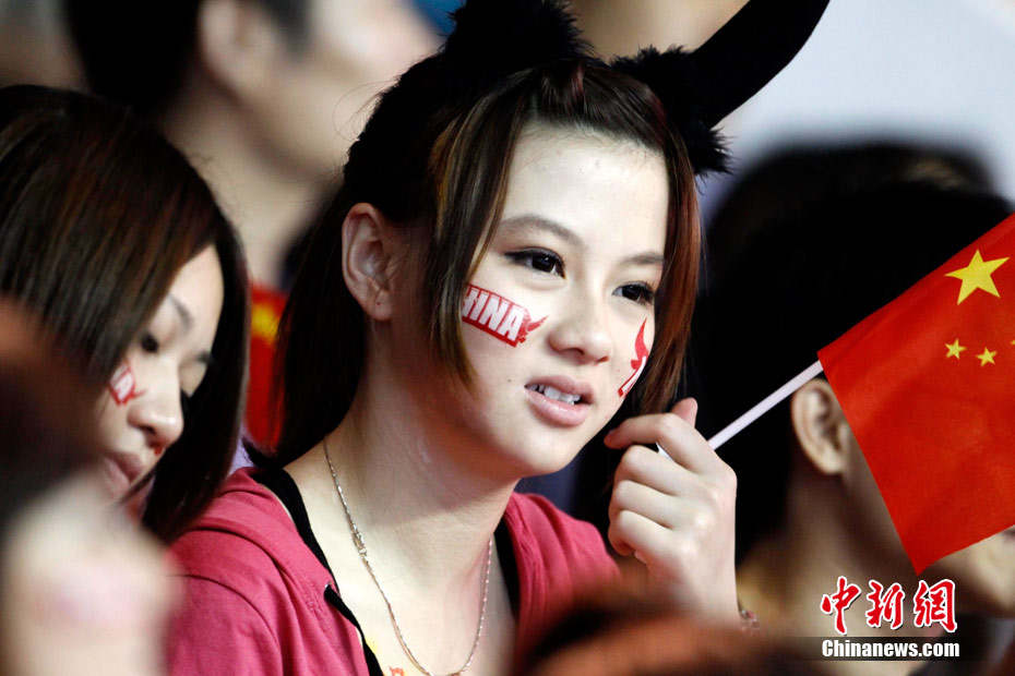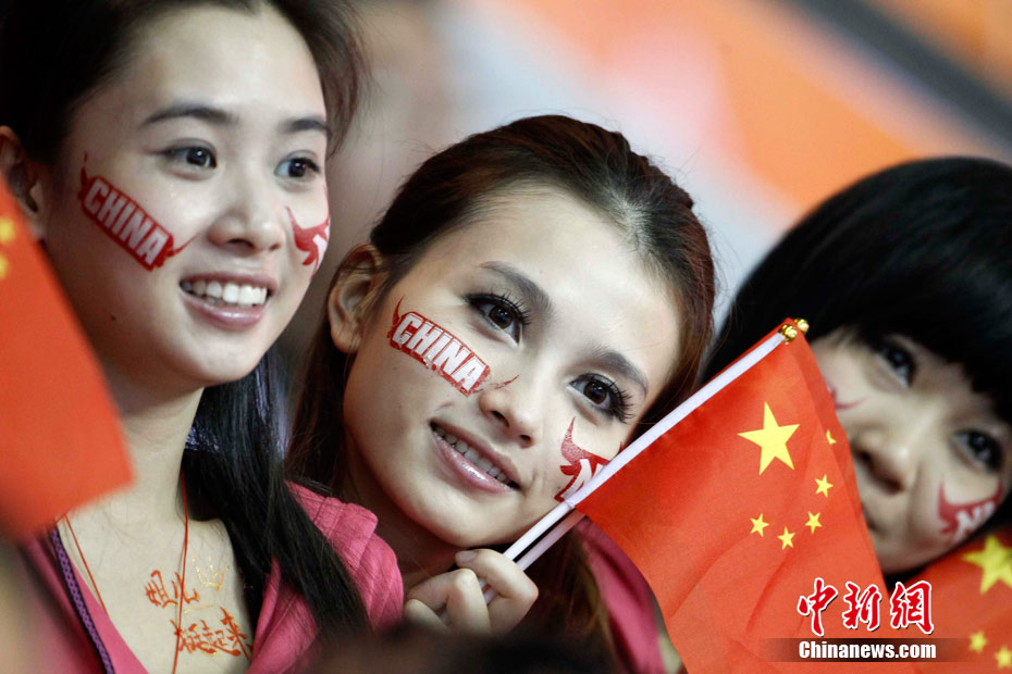 11月15日,廣州亞運會舉重比賽繼續(xù)在東莞舉行,看臺上一群美少女觀眾令賽場氣氛更為火爆。中新社記者 杜洋 攝
