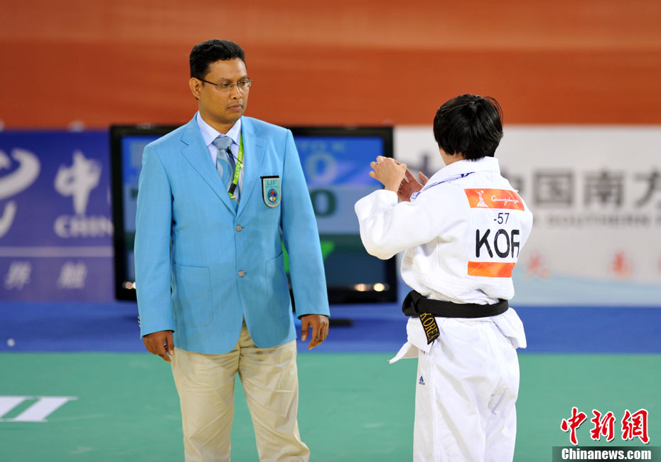 11月15日,亞運(yùn)會(huì)沙排比賽拉開(kāi)戰(zhàn)幕,雖然天氣炎熱,但現(xiàn)場(chǎng)觀眾還是被這項(xiàng)激情洋溢的比賽所迷住。中新社記者 鄧霞 攝