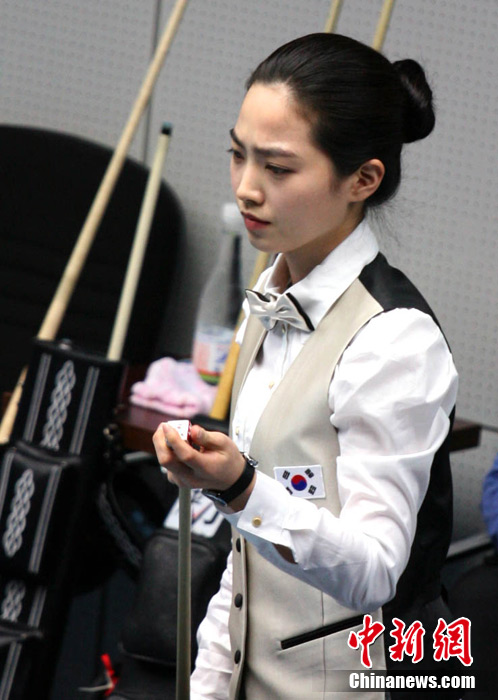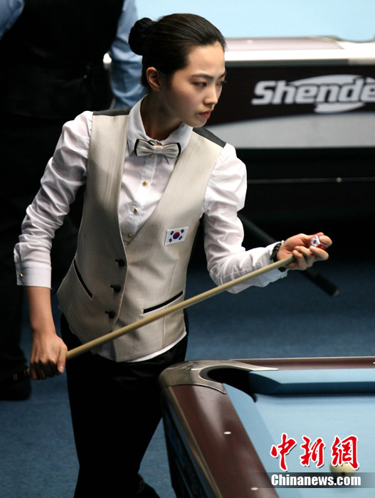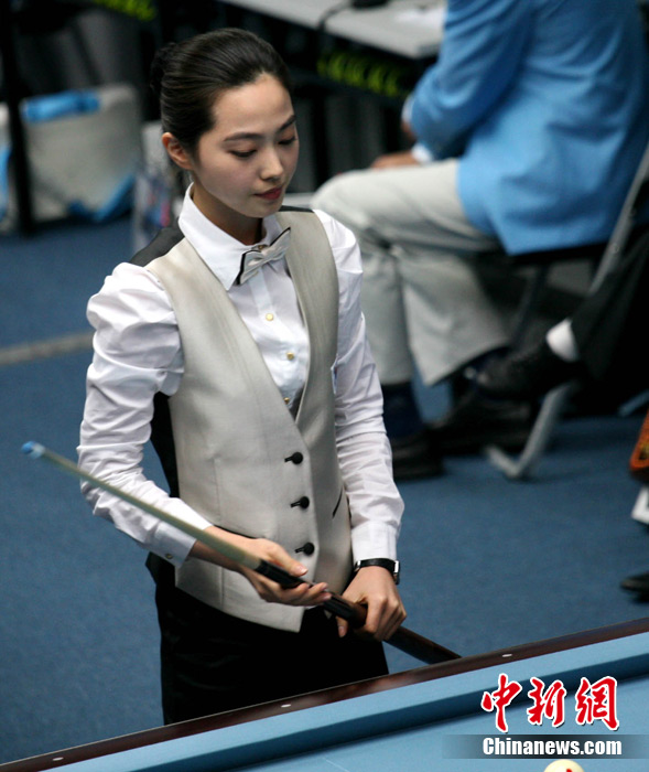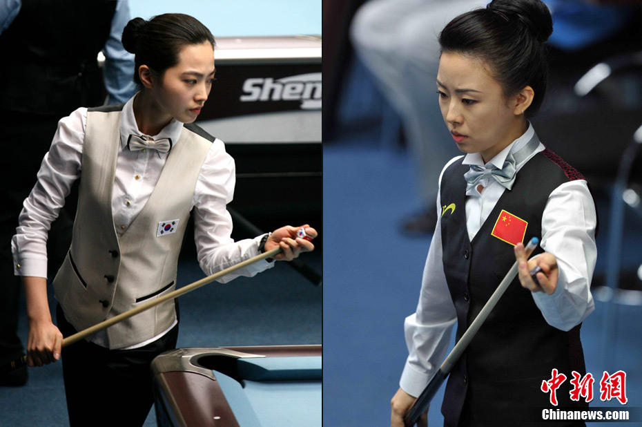11月15日,女子美式九球單打預(yù)賽,來自中國(guó)的潘曉婷和來自韓國(guó)的車侑藍(lán)(車俞嵐)分別戰(zhàn)勝對(duì)手,晉級(jí)下一輪,兩位知名選手的亮相,掀起場(chǎng)內(nèi)的“美麗風(fēng)暴”。