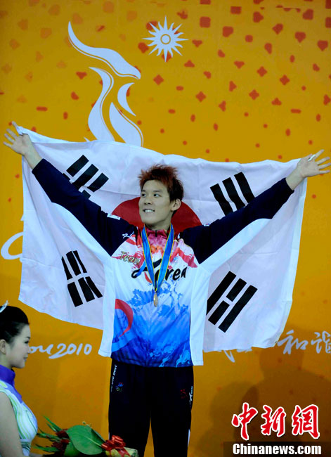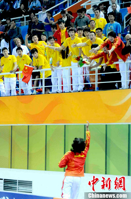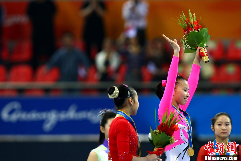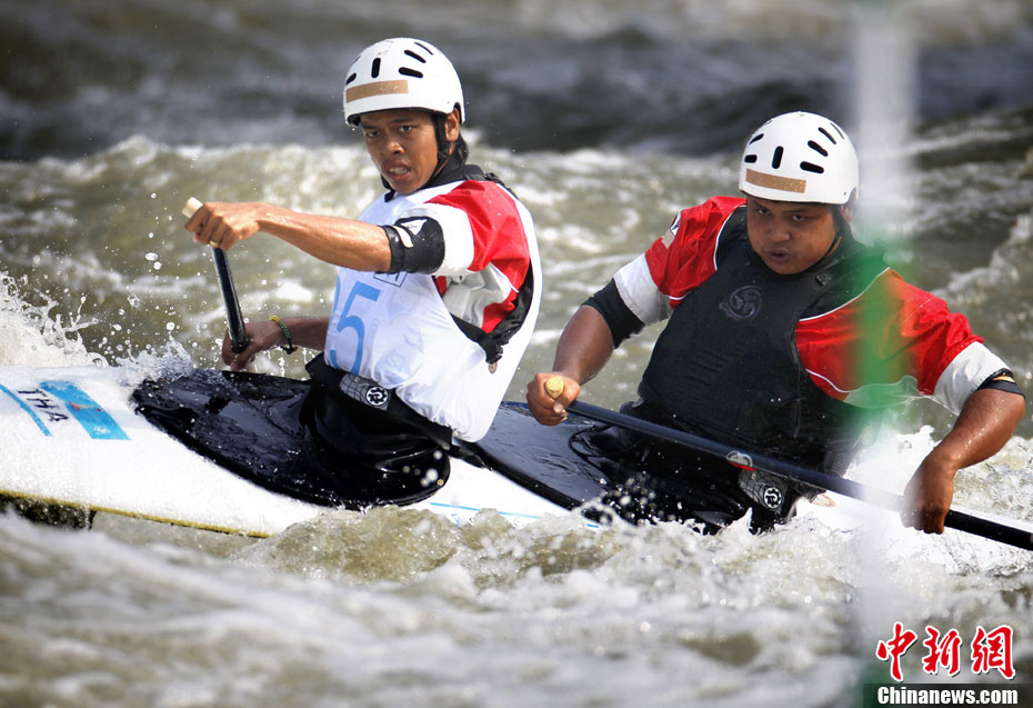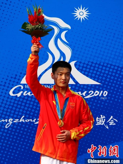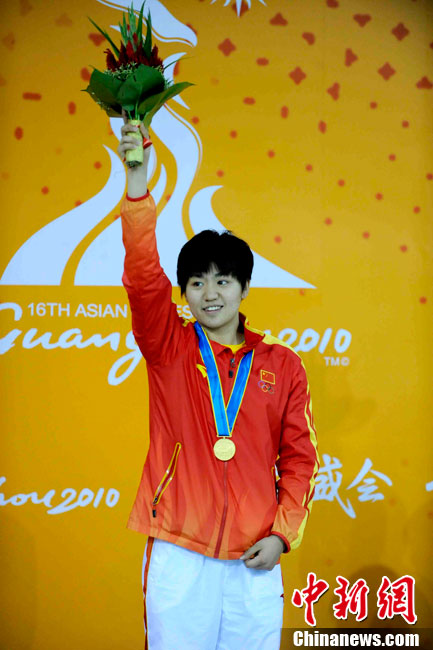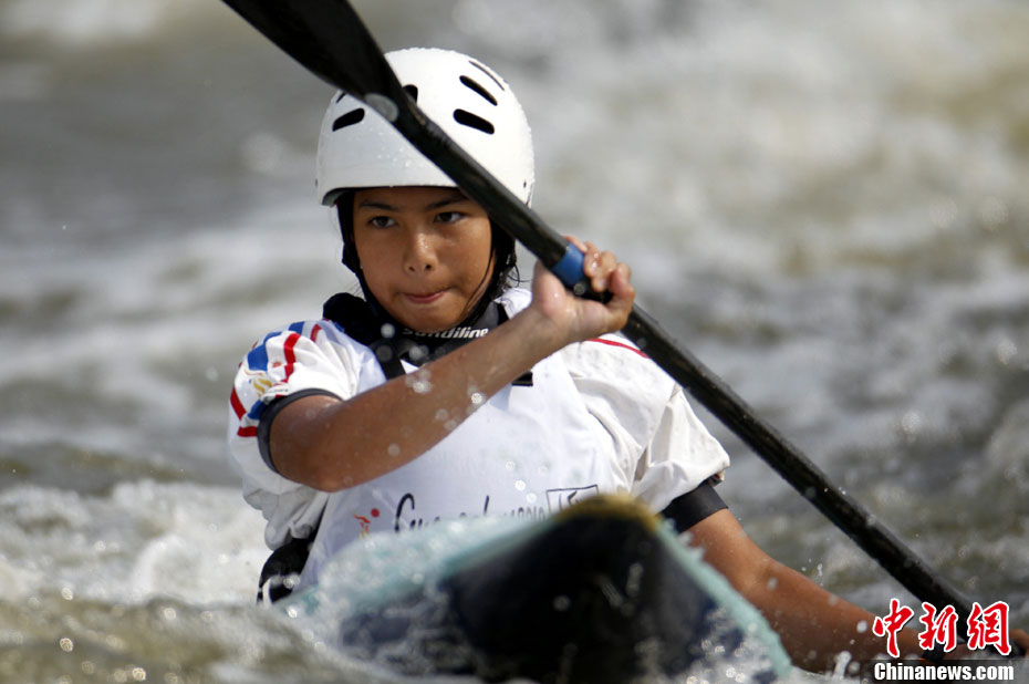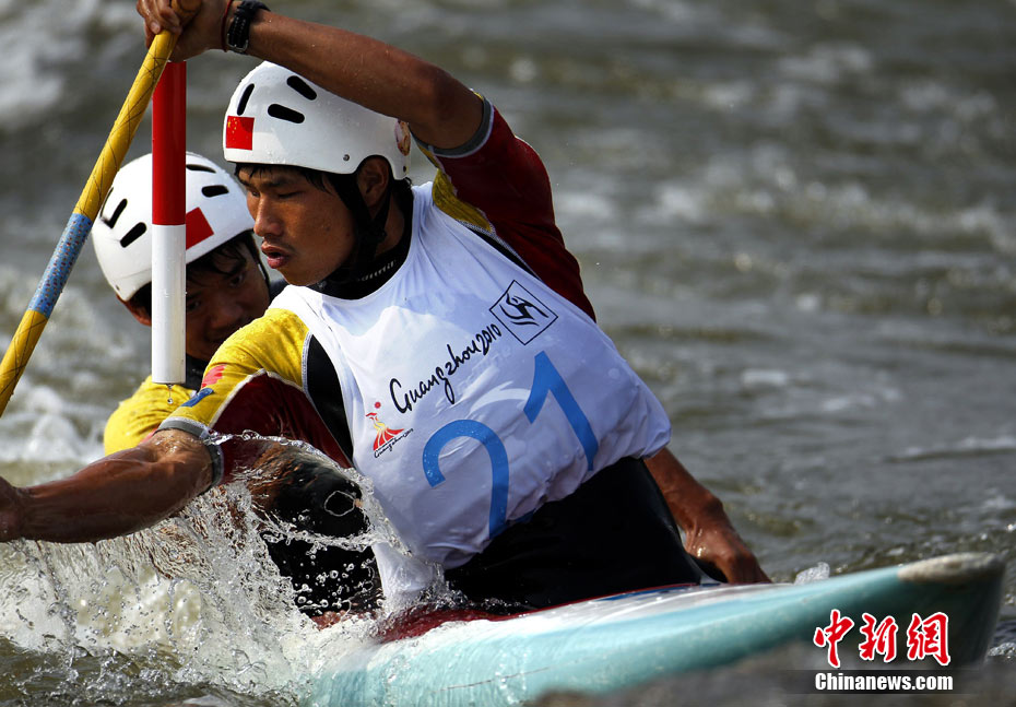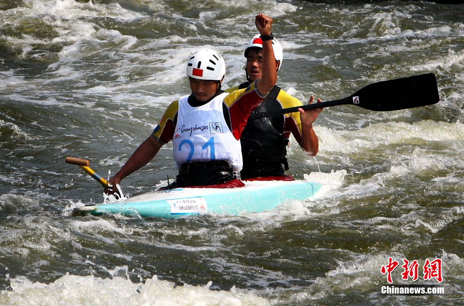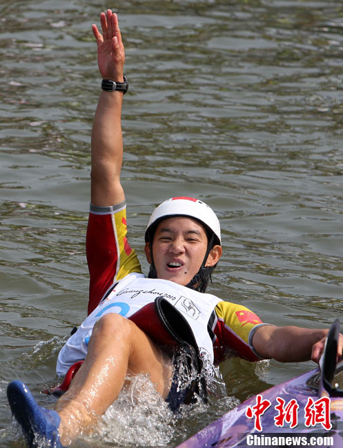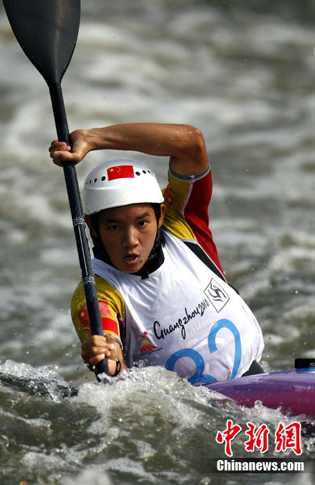 11月16日上午,中國選手鄒映影在廣州亞運會皮劃艇激流回旋女子單人皮艇決賽中獲得冠軍。 中新社記者 任晨鳴 攝