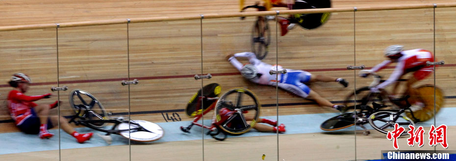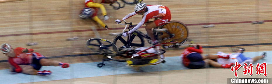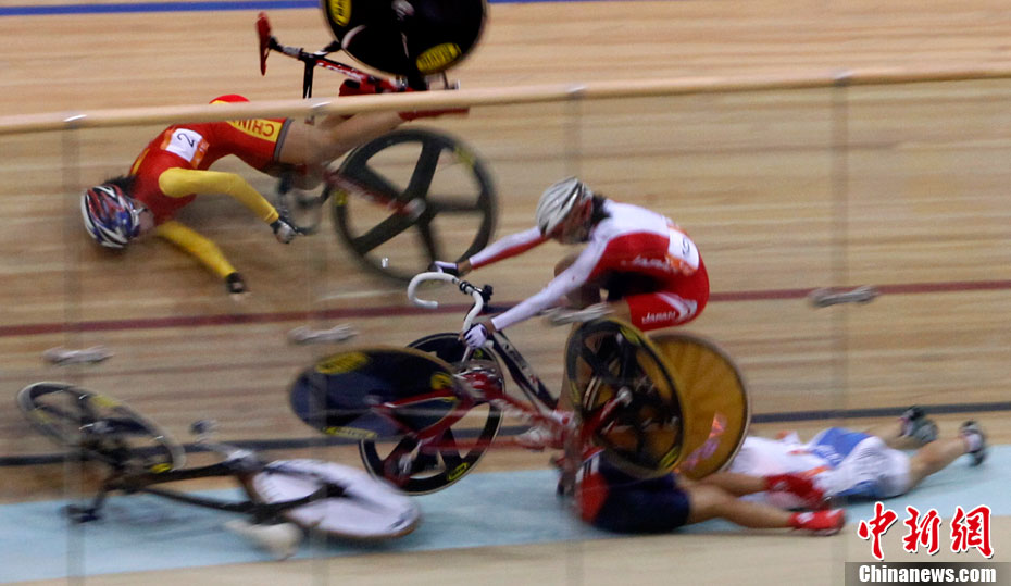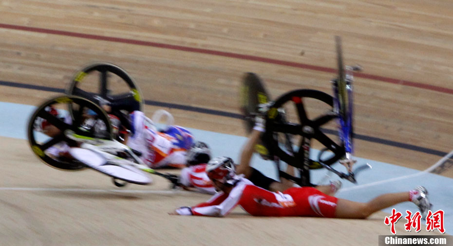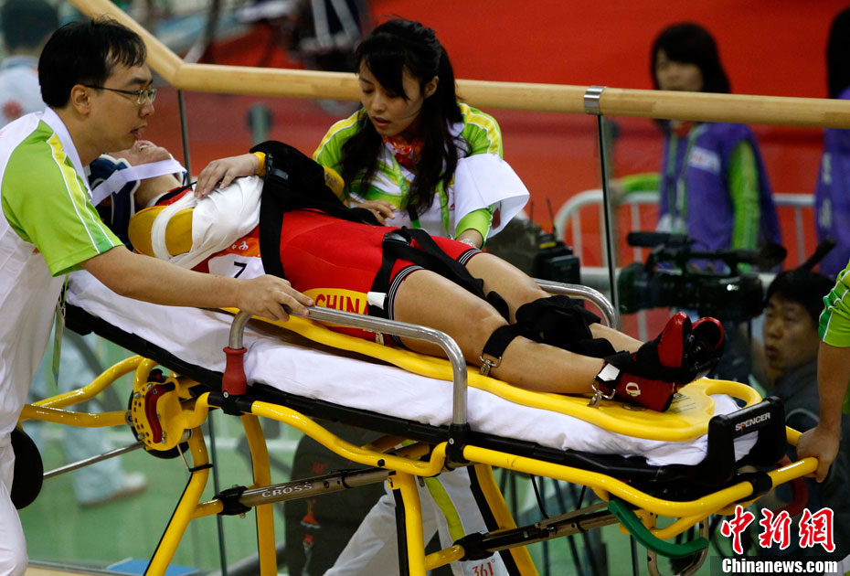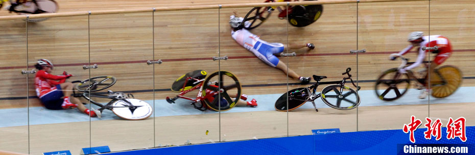 11月16日,廣州亞運(yùn)會自行車比賽進(jìn)入第四天,在女子積分賽比賽的最后沖刺階段,突發(fā)嚴(yán)重車禍,七位比賽選手均翻車倒地被送往醫(yī)院救治。其中中國的湯科蓉傷勢最為嚴(yán)重,被送往醫(yī)院急救。中新社記者 趙振清 攝