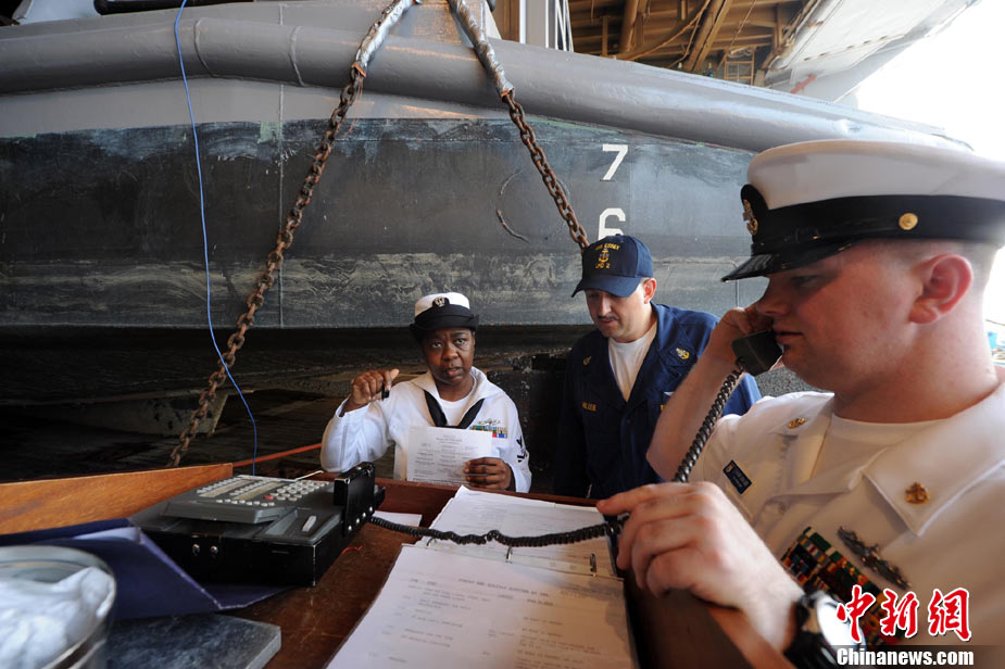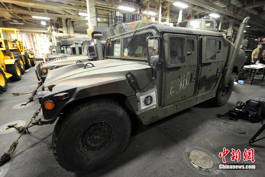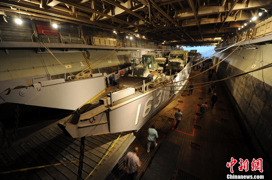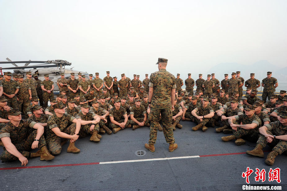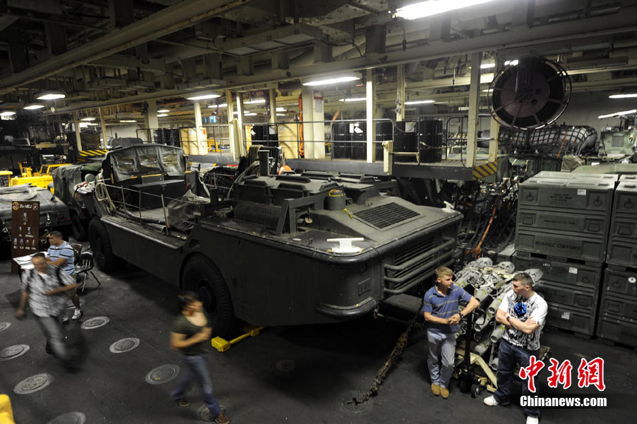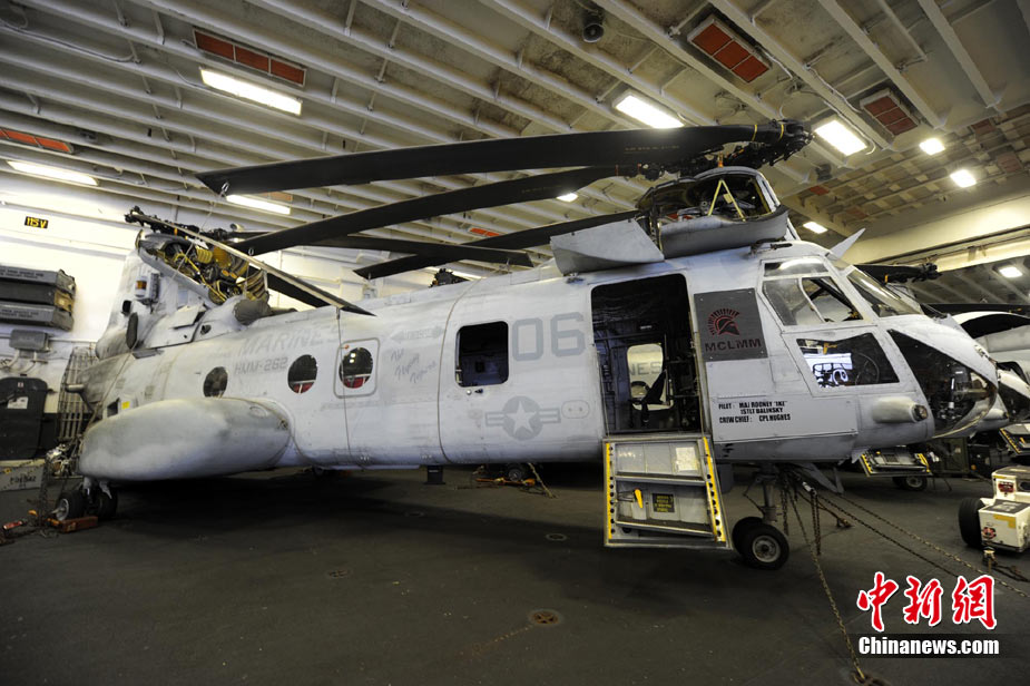 有“鋼鐵短吻鱷”之稱的“埃塞克斯”號,搭載有AV-8B“鷂”式戰(zhàn)機(jī)、CH-53E“海上種馬”直升機(jī)、CH-46E“海上騎士”直升機(jī)、UH-1N超級休伊直升機(jī)等逾30架各型機(jī)型,以及超過2200名船員和海軍官兵。中新網(wǎng)記者 鄭祚聲 攝