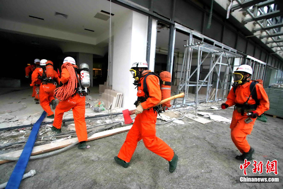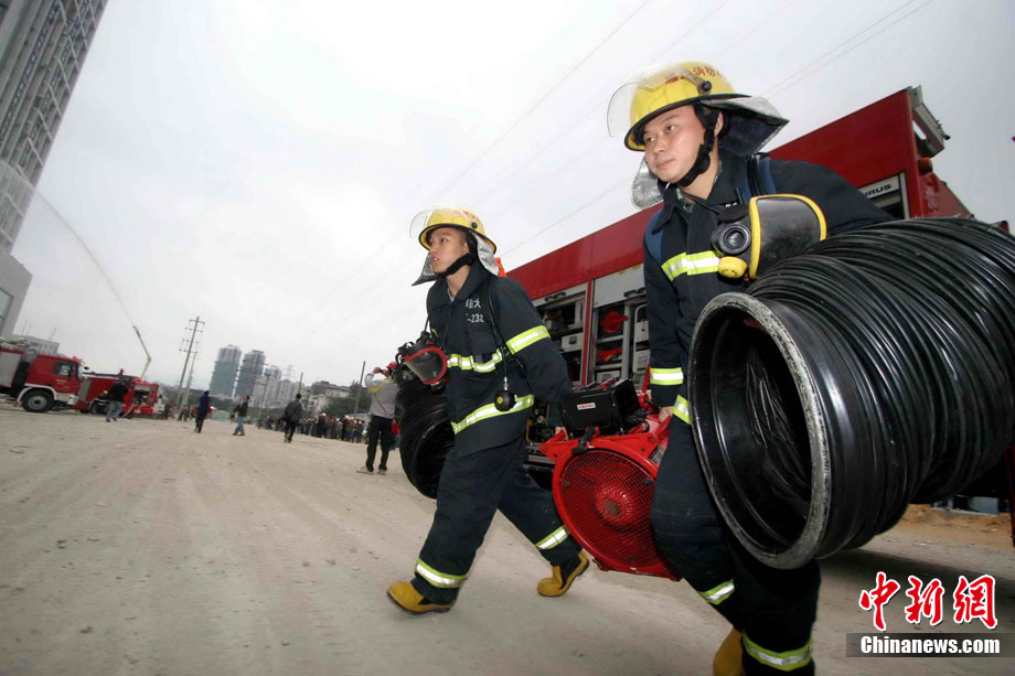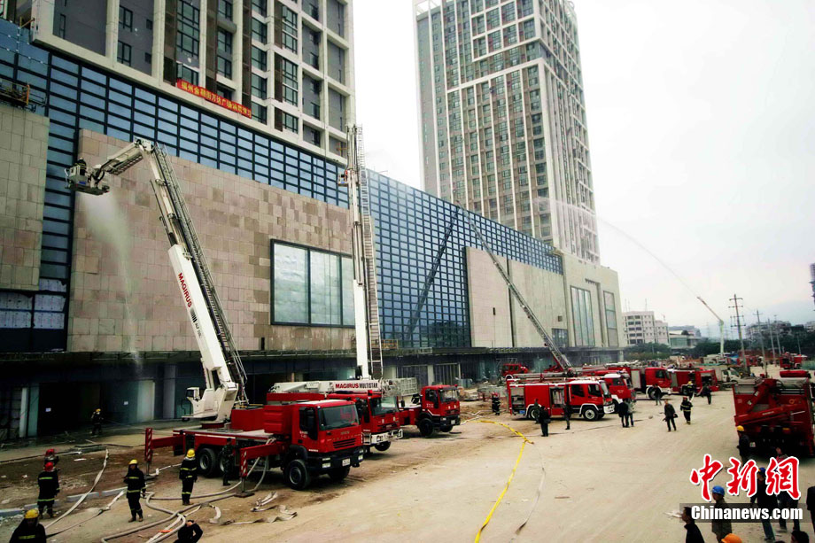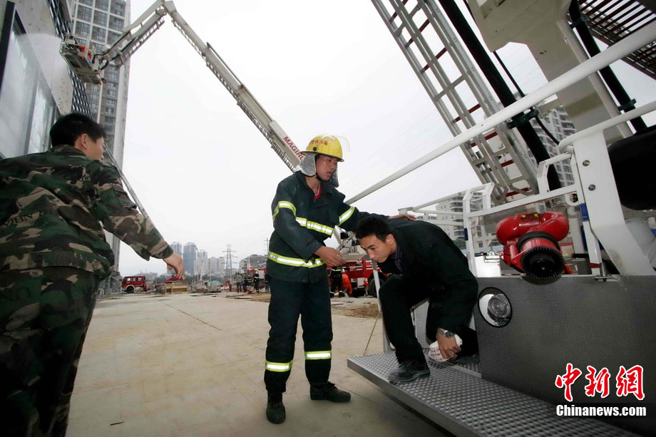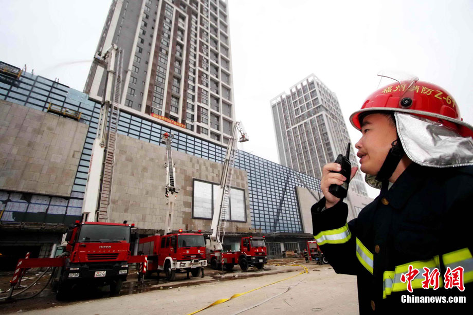 中新網(wǎng)福州11月18日電 (朱曉航 黃綠榮)為吸取“11.15”上海市靜安區(qū)膠州路在建高層教師公寓樓特大火災(zāi)事故教訓(xùn),福州18日在該市臺(tái)江區(qū)舉行了一場(chǎng)大型滅火救援演練。
