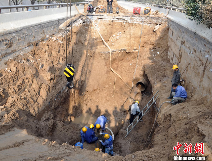 11月18日,河南鄭州爆裂自來(lái)水管道正在搶修,鄭州自來(lái)水柿園水廠主管道17日發(fā)生爆裂,該水廠是鄭州較大的一所水廠,日供水37萬(wàn)立方米。目前該事故影響整個(gè)鄭州西南部城市供水,幾十萬(wàn)居民停水,正在緊急調(diào)用其他水廠向西區(qū)供水,以滿足日常用水需要。中新社發(fā) 豫分 攝