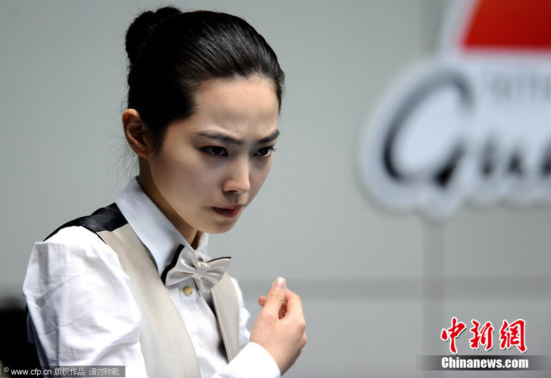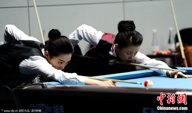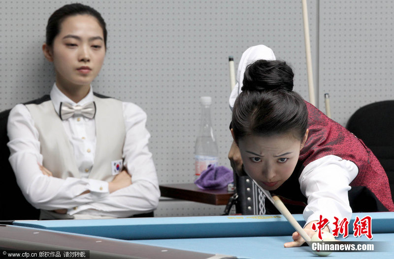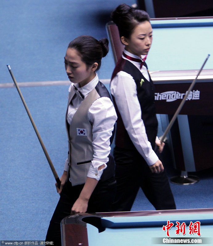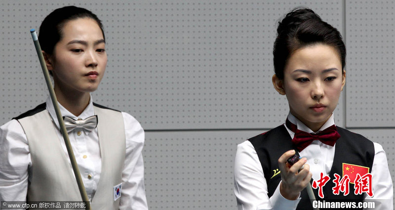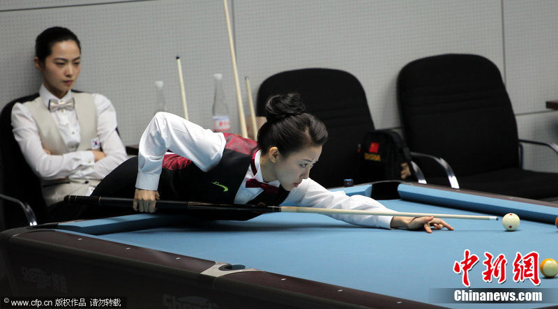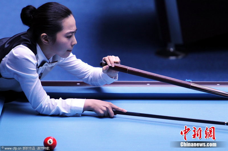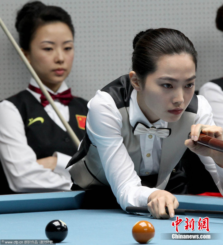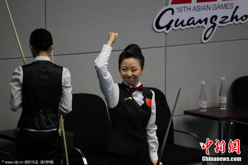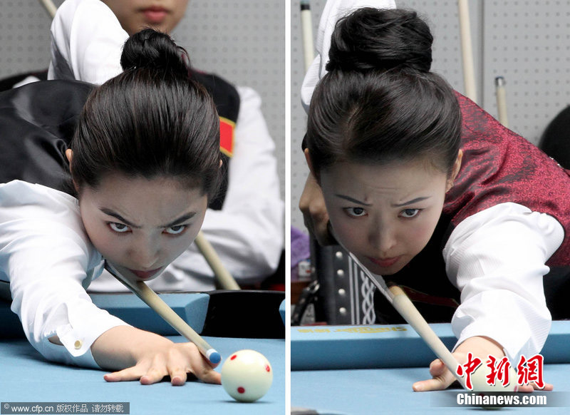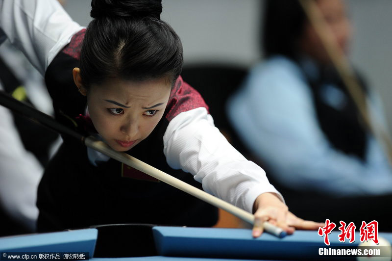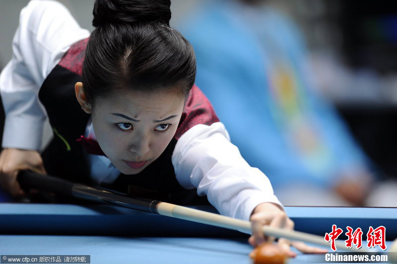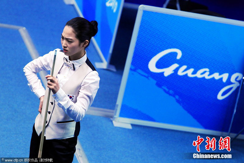 11月18日,2010廣州亞運(yùn)會(huì)女子美式9球單打1/4決賽,兩位公認(rèn)的臺壇美女展開激烈爭奪,最終,中國選手潘曉婷以7:6的最終比分戰(zhàn)勝韓國的車侑藍(lán)(車俞嵐)晉級下一輪。圖片來源:cfp視覺中國