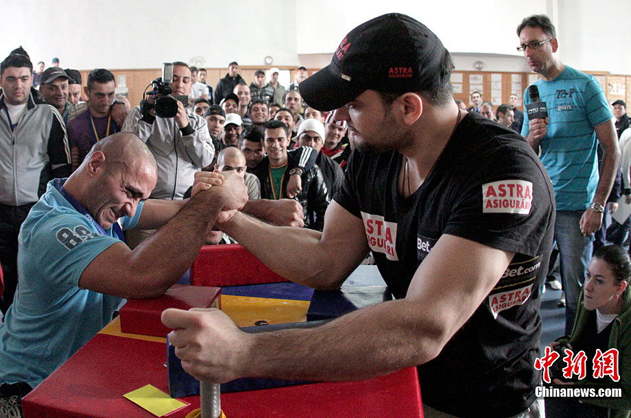 當(dāng)?shù)貢r(shí)間11月18日,羅馬尼亞首都布加勒斯特的監(jiān)獄舉行了掰手腕大賽。90公斤級(jí)世界掰手腕世界冠軍Ion Oncescu也親臨現(xiàn)場。