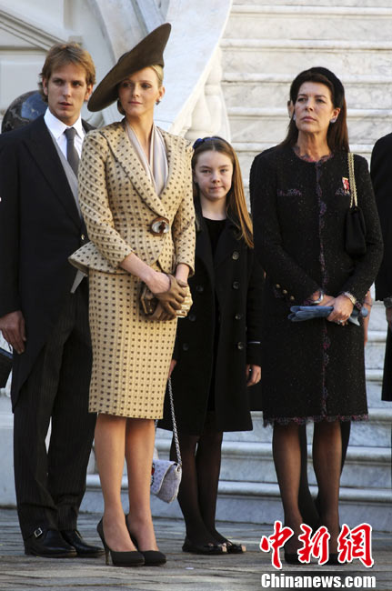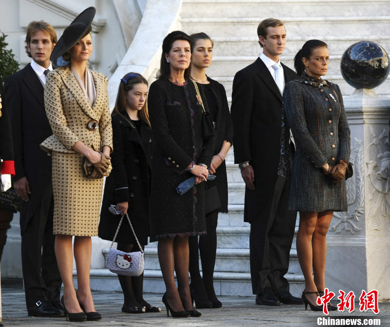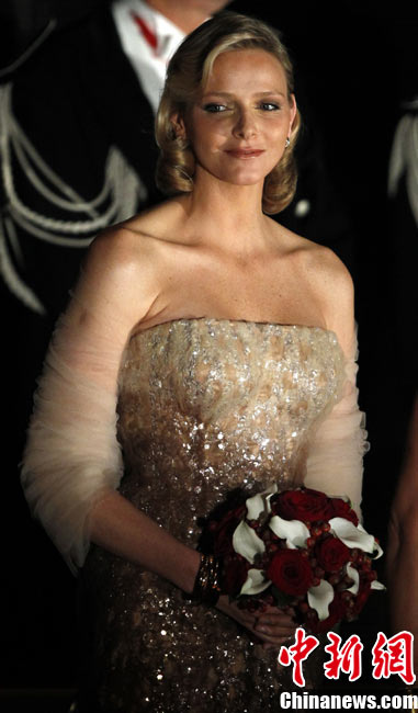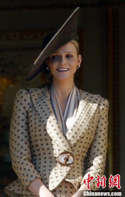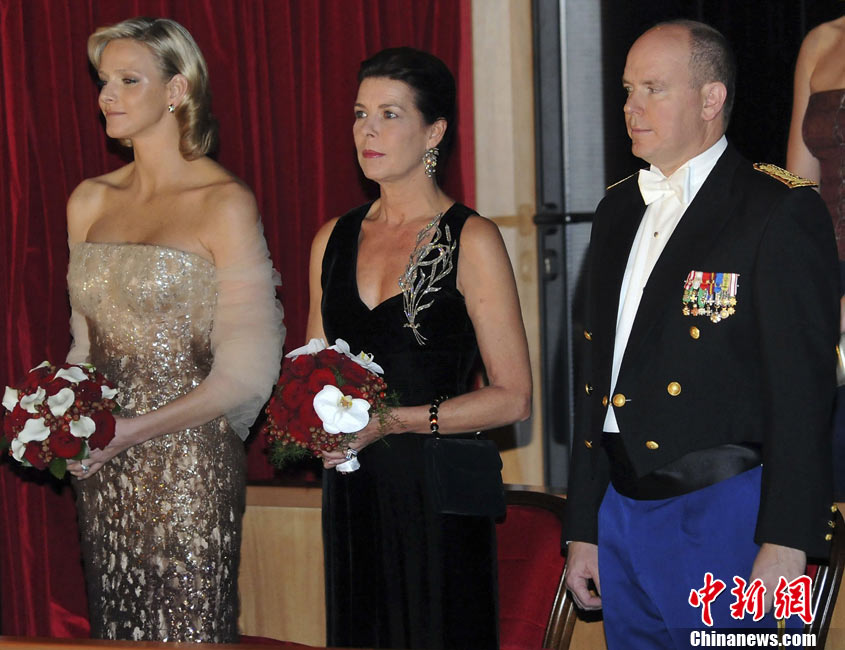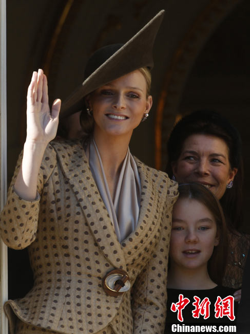 19日,摩納哥國家元首阿爾貝二世親王的準(zhǔn)王妃查倫·維特施托克(圖左)驚艷亮相摩納哥國慶慶典。她與王室成員一同出現(xiàn)在王宮觀禮臺,接受民眾和游客的歡呼與祝福,當(dāng)晚她又以一身閃亮的白色禮服再次與王室成員共同亮相。
