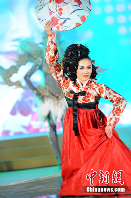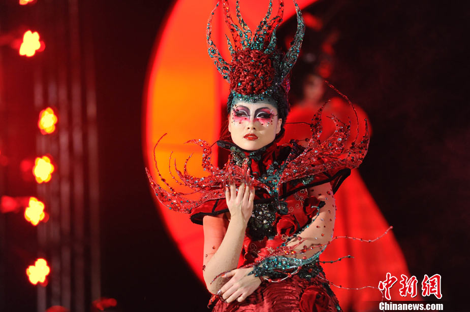 11月22日晚,第十屆中國(guó)國(guó)際美容美發(fā)化妝師全能大賽頒獎(jiǎng)晚會(huì)在北京隆重舉辦。被業(yè)界譽(yù)為“中華美業(yè)第一賽”的全能大賽是中國(guó)一個(gè)超大規(guī)模的專(zhuān)業(yè)性賽事,當(dāng)天,容納6000多人的會(huì)場(chǎng)座無(wú)虛席。在400平米的專(zhuān)業(yè)舞臺(tái)上,來(lái)自日本、韓國(guó)、馬來(lái)西亞、新加坡及中國(guó)20多個(gè)省市自治區(qū)的40余支代表隊(duì)共400多名選手同臺(tái)競(jìng)技,100多名專(zhuān)家評(píng)委現(xiàn)場(chǎng)評(píng)判。比賽過(guò)程精彩紛呈,亮點(diǎn)不斷,艷麗夸張的模特造型令觀眾大飽眼福。中新社記者 李學(xué)仕 攝