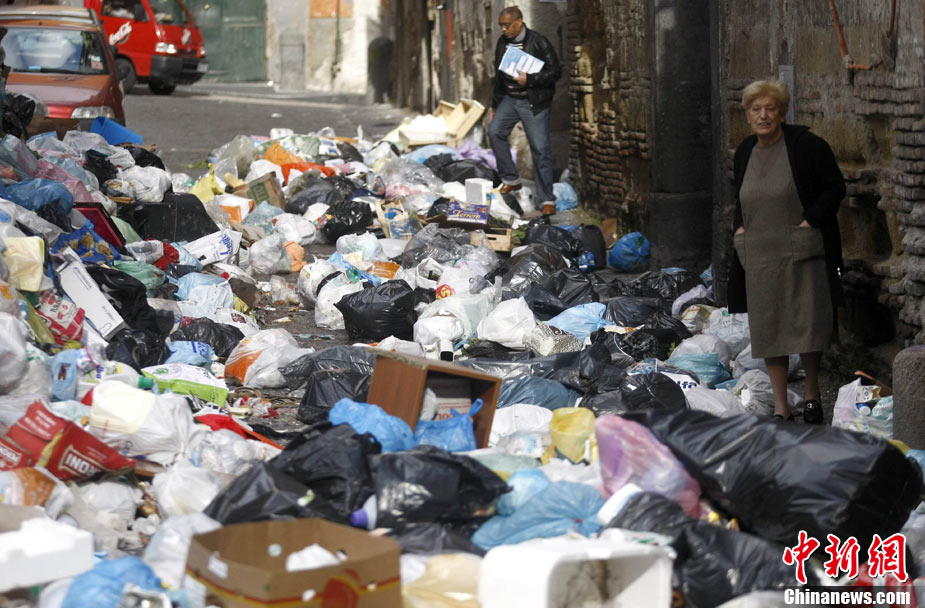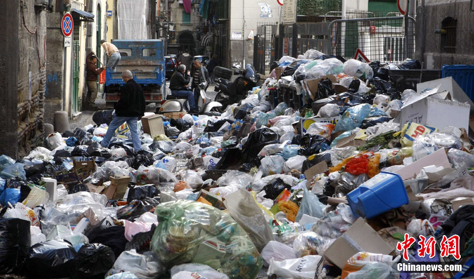 11月22日,意大利“垃圾危機(jī)”扔在持續(xù),那不勒斯街道垃圾成患。意大利政府打算在位于那不勒斯東南大約20公里的泰爾齊尼奧鎮(zhèn)新建一座垃圾處理場,以解決那里的垃圾問題。