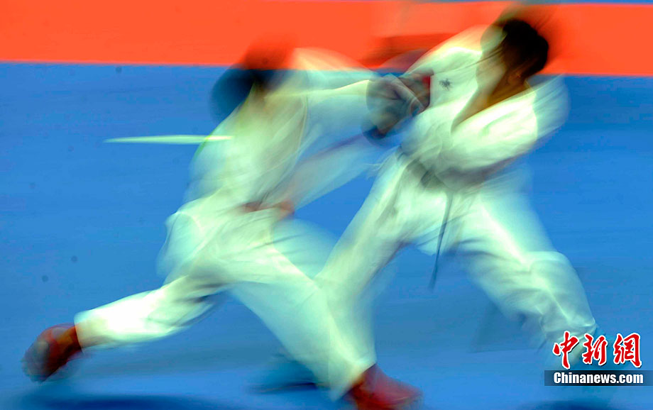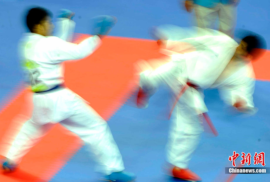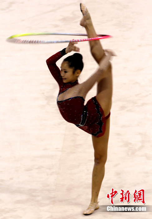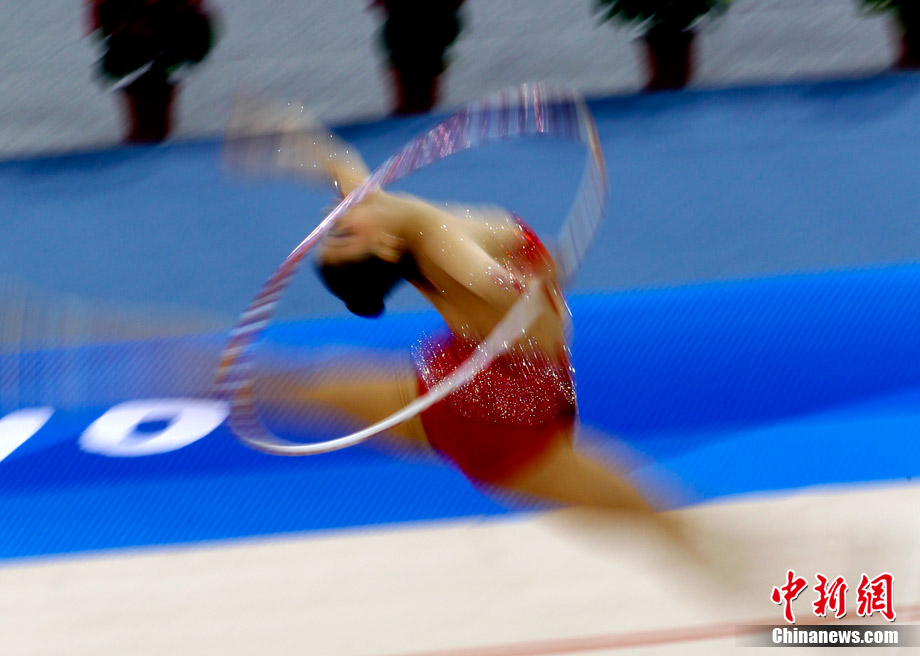 11月25日上午,廣州亞運(yùn)會(huì)藝術(shù)體操個(gè)人、團(tuán)體決賽在亞運(yùn)城體育館開賽。圖為中國(guó)選手在比賽中,場(chǎng)下的各國(guó)運(yùn)動(dòng)員聚精會(huì)神的觀看對(duì)手表現(xiàn)。 中新社記者 金碩 攝