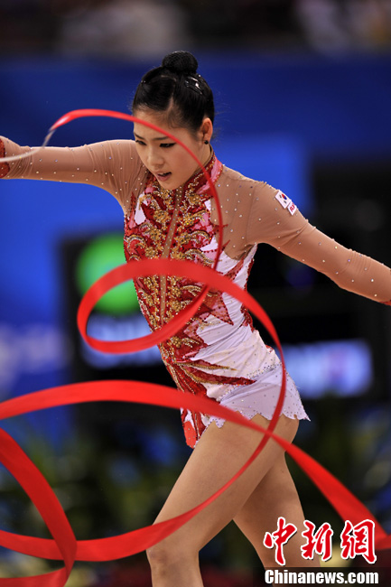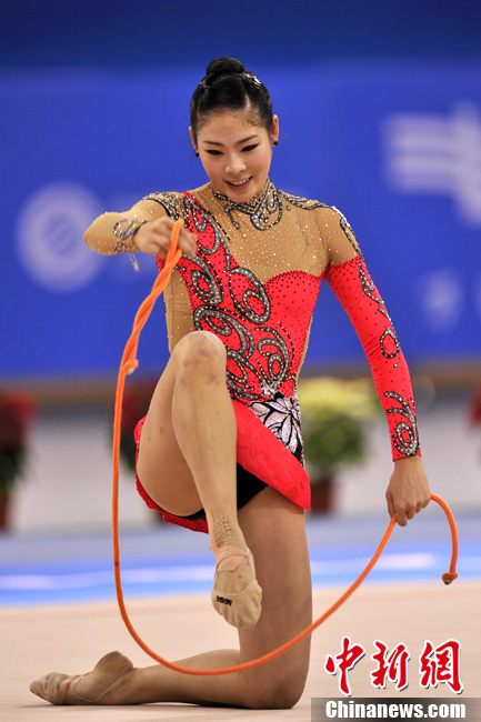 11月25日,亞運(yùn)會上最“唯美”的項(xiàng)目藝術(shù)體操正式開賽,90后的小選手們纖細(xì)曼妙的身材、柔美而富有韻律的動作成為亞運(yùn)賽場最美的風(fēng)景線。中新網(wǎng)記者 金碩 攝