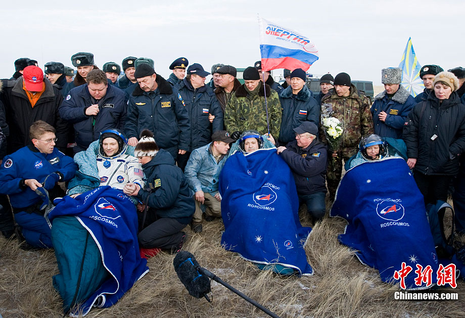 俄羅斯地面飛行控制中心當(dāng)?shù)貢r(shí)間11月26日宣布,國際空間站的3名宇航員已于當(dāng)日清晨乘俄“聯(lián)盟TMA-19”載人飛船安全返回地球。在國際空間站內(nèi)工作了162天的俄羅斯宇航員尤爾齊欣、美國宇航員維洛克和沃克爾乘坐“聯(lián)盟TMA-19”載人飛船,平安降落在哈薩克斯坦阿爾卡雷克市以北的草原上,3名宇航員目前狀態(tài)良好。