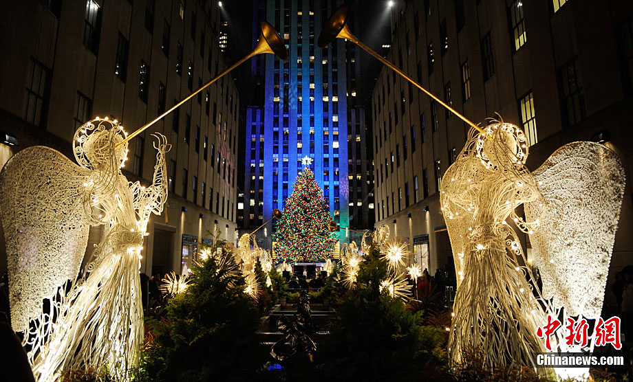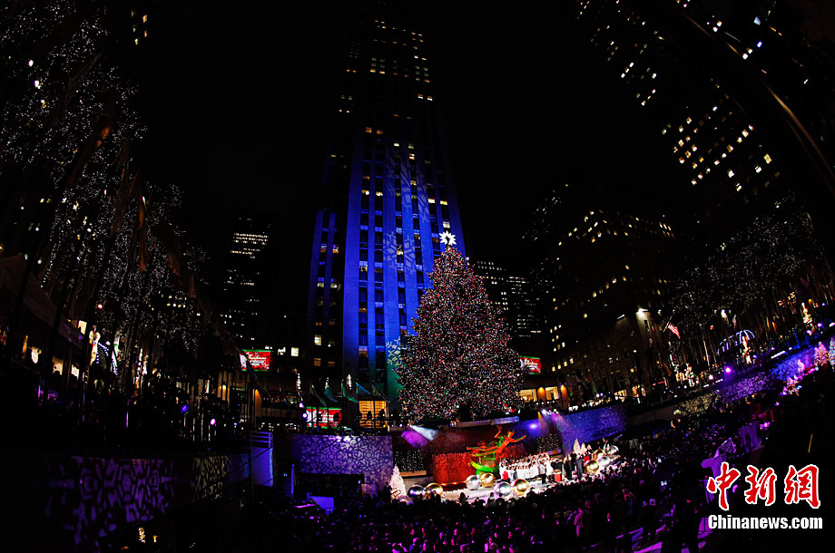紐約洛克菲勒中心廣場圣誕樹正式點亮