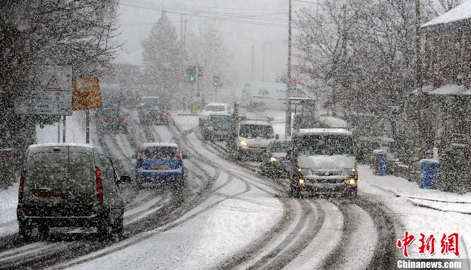 強(qiáng)冷空氣近日肆虐歐洲,多國(guó)遭到暴雪襲擊,目前已導(dǎo)致歐洲范圍內(nèi)至少13人死亡,并對(duì)各國(guó)陸空交通造成嚴(yán)重影響,航班被迫取消,多條公路關(guān)閉。圖為12月1日,在英國(guó)斯托克波特,車輛在暴雪中行駛。
