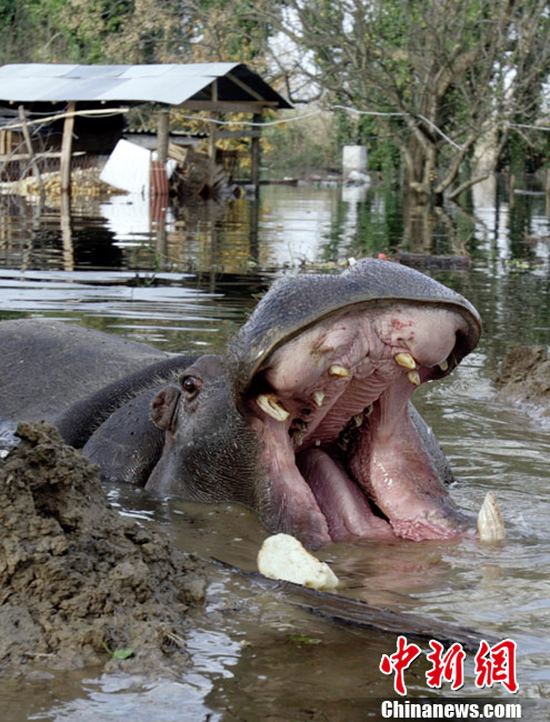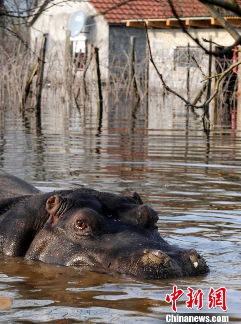 巴爾干半島大雨成災(zāi) 動物園河馬出逃