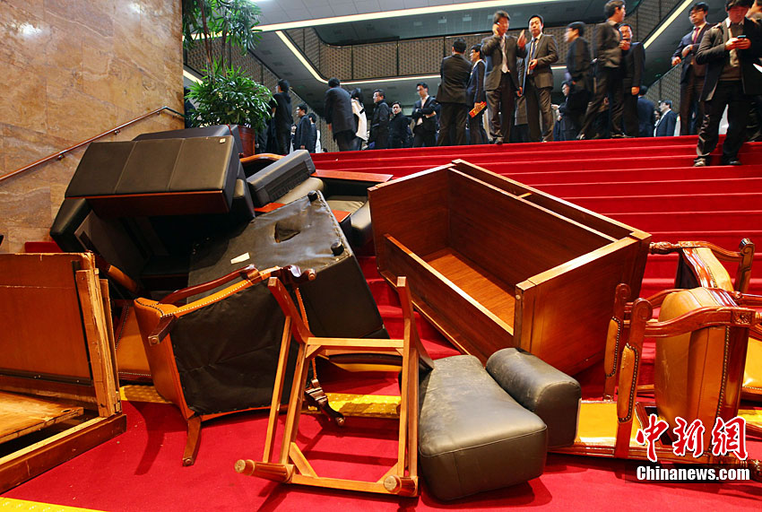 當(dāng)?shù)貢r間12月7日,韓國首爾國民議會大廳內(nèi),朝野議員再度爆發(fā)肢體沖突。據(jù)悉,本次議會會議的議題是2011年國家預(yù)算計劃案問題。