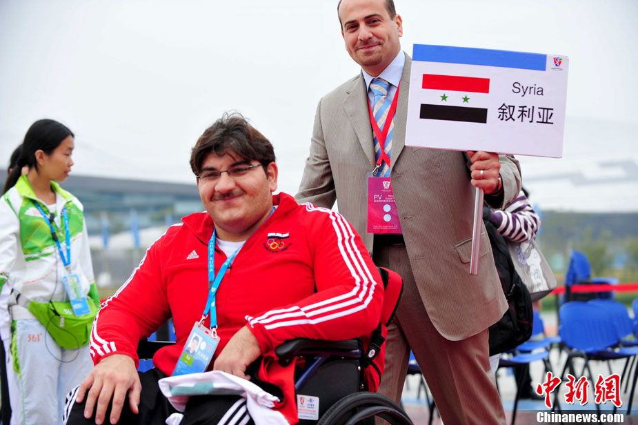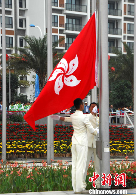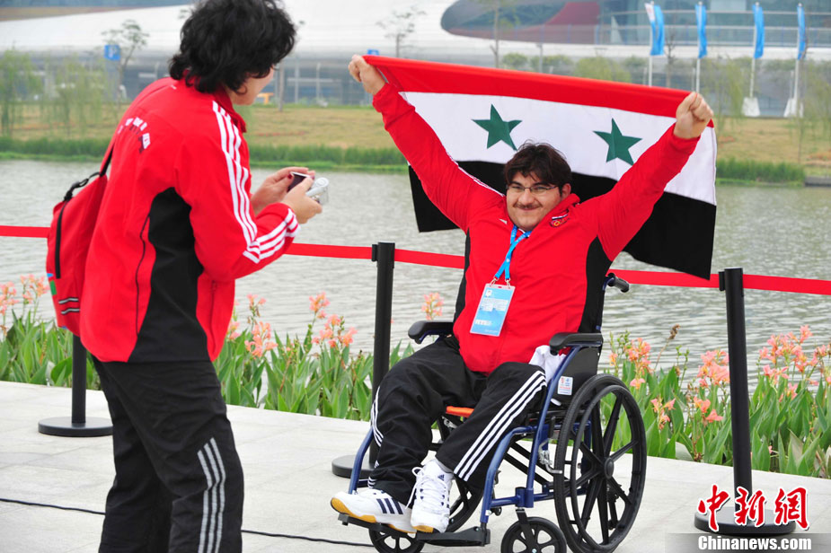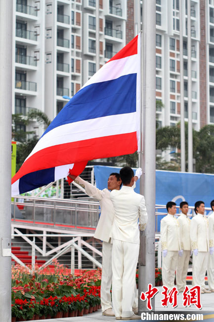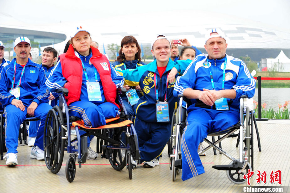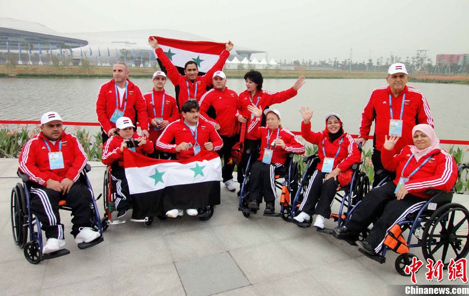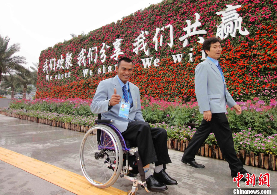 12月11日,廣州亞殘運會運動員村舉行體育代表團歡迎儀式,來自卡塔爾、尼泊爾、土庫曼斯坦、泰國、巴林、中國香港、中國澳門等國家和地區(qū)的運動員、教練員、官員在運動員村共享歡樂與榮耀。