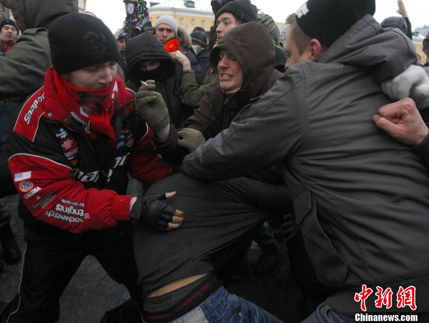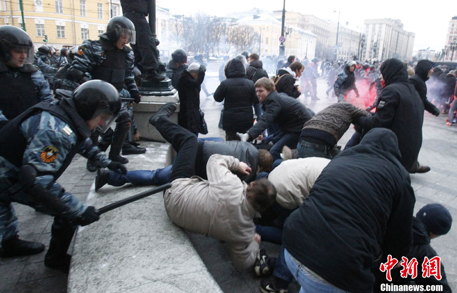 12月11日,俄羅斯首都莫斯科發(fā)生大規(guī)模球迷騷亂。 騷亂直接原因是此前于12月6日發(fā)生在市內(nèi)的一起斯巴達克俱樂部球迷與高加索人之間的群毆事件。事件導(dǎo)致一名斯巴達克俱樂部球迷死亡,11日中午,一些球迷聚集到莫斯科市中心馬涅什廣場,聲稱為死亡球迷舉行悼念儀式,從而最終引發(fā)了目前這場有多達5萬名球迷參與的騷亂。