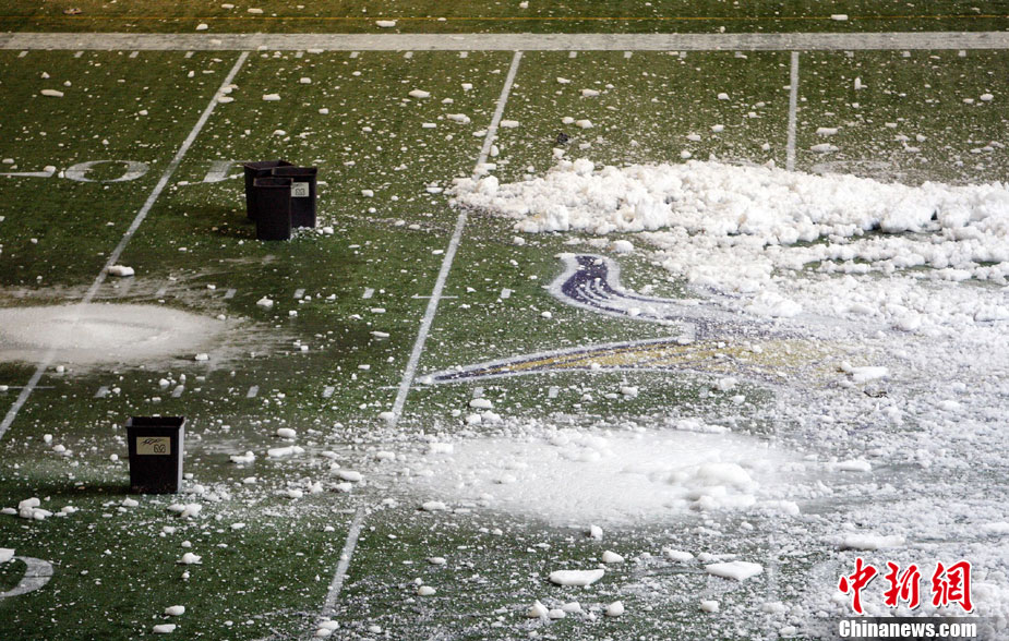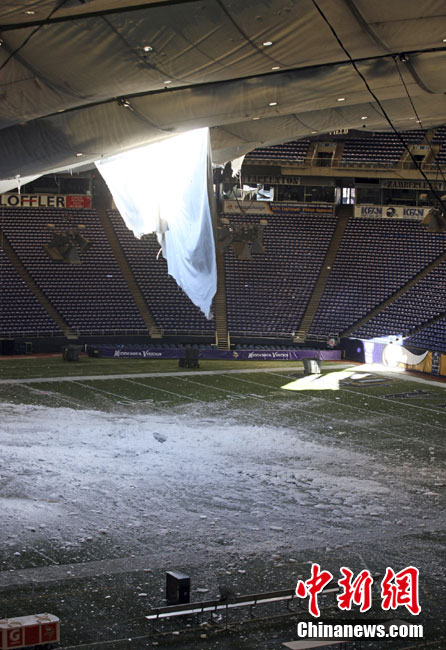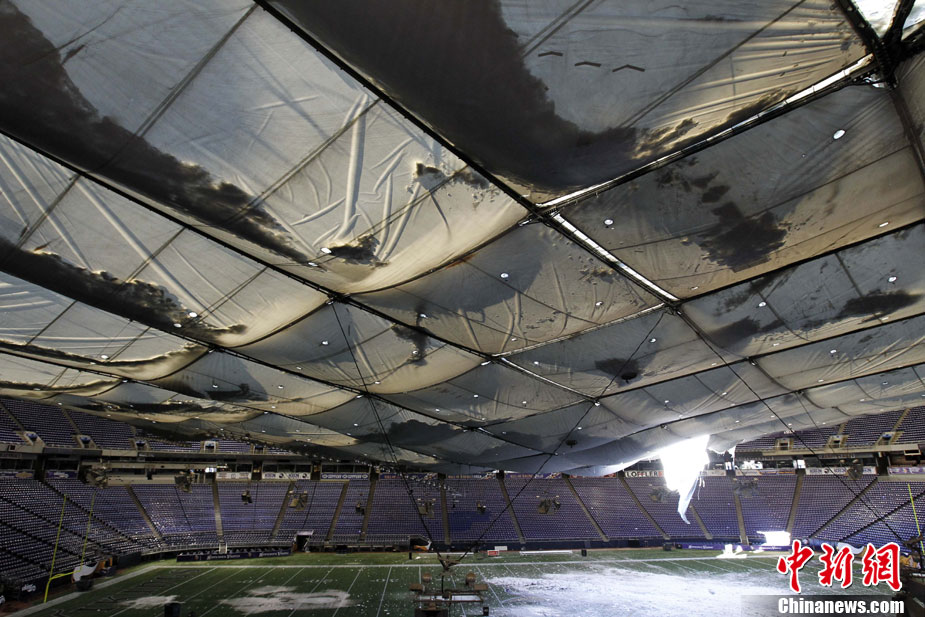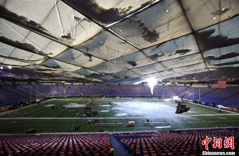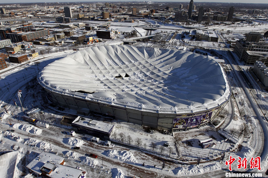 美國(guó)中西部遭暴風(fēng)雪襲擊 體育場(chǎng)被雪壓塌