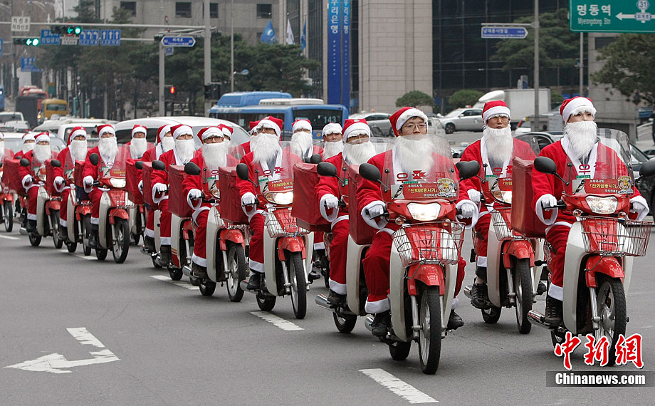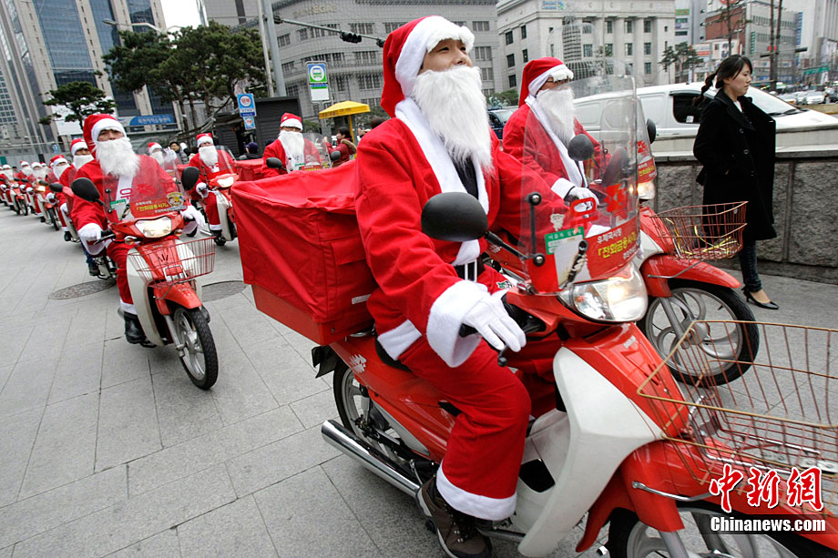 當地時間12月13日,韓國首爾中央郵局舉行“圣誕老人 愛的信使”儀式。郵遞員變身“圣誕老人”送郵件,迎接圣誕節(jié)的到來。