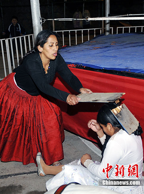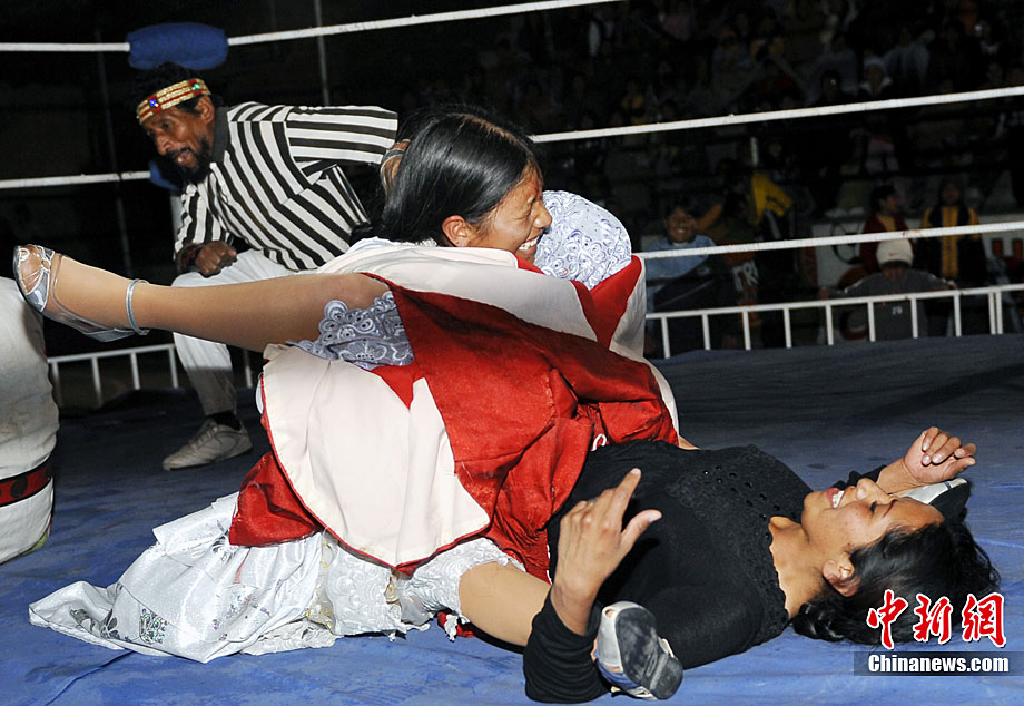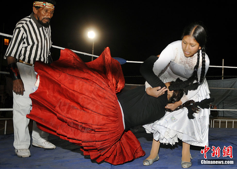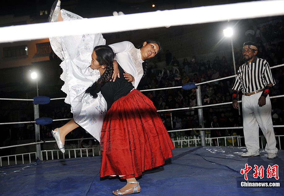 位處南美洲的玻利維亞為了刺激旅游業(yè),每年冬天都會(huì)舉行女子摔角比賽,雖然場(chǎng)地大小與聲光音響效果遠(yuǎn)不及著名的美國(guó)女子摔角聯(lián)盟大賽,不過(guò)緊張刺激的過(guò)程,僅僅一美元的門票價(jià)格,仍然吸引了不少游客到場(chǎng)觀戰(zhàn)。