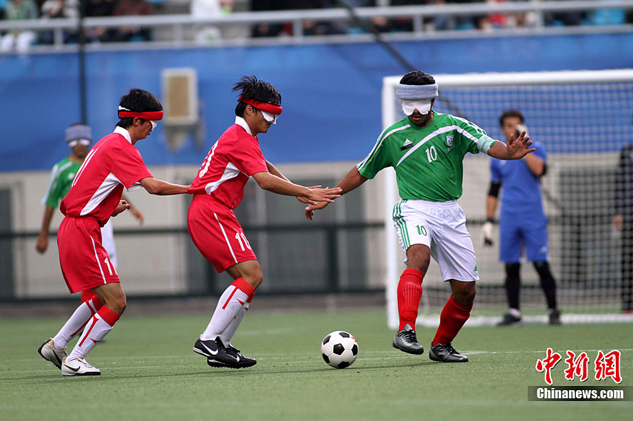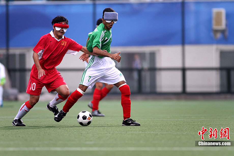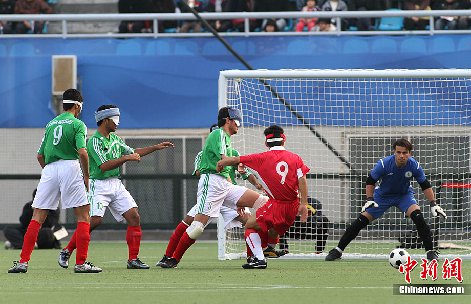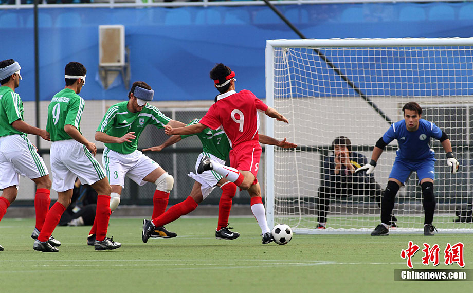 12月18日,亞殘運(yùn)會(huì)廣州奧林匹克體育中心,在五人制(男子)足球決賽中,中國(guó)隊(duì)與伊朗隊(duì)的選手們充分發(fā)揮運(yùn)動(dòng)員的拼搏精神。經(jīng)過(guò)激戰(zhàn),中國(guó)隊(duì)最后以1:0的成績(jī)戰(zhàn)勝伊朗獲得金牌。張美安 攝