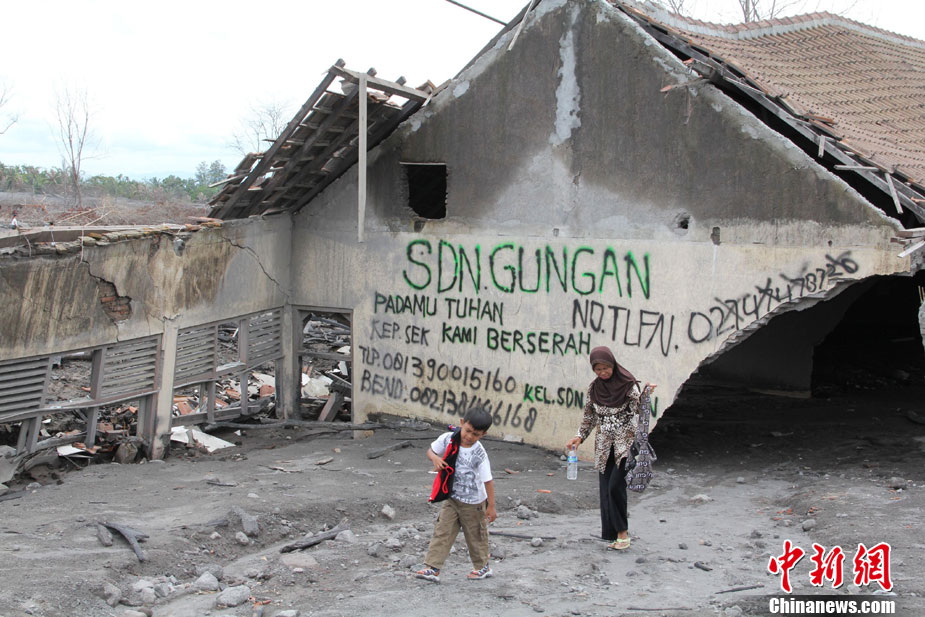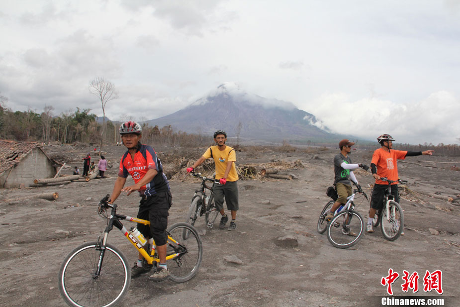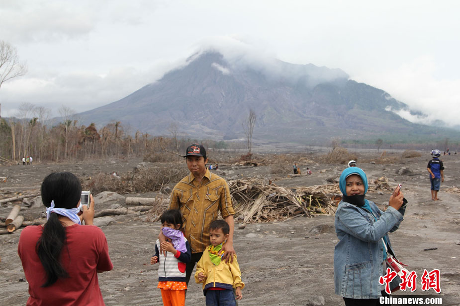 今年10月下旬,位于印尼日惹市的默拉皮火山在沉睡百年后,再次大規(guī)模數(shù)次噴發(fā),并造成300多人罹難、成千上萬人受傷,數(shù)十萬人撤離家園。默拉皮火山11月份停止噴發(fā)后,來自印尼各地的民眾紛紛來此旅游觀光;鹕侥_下一個叫GUNGAND被火山巖漿埋沒的村莊,每天來旅游的人數(shù)逾5000人。圖為當(dāng)?shù)孛癖娫谂恼樟裟。中新社發(fā) 顧時宏 攝