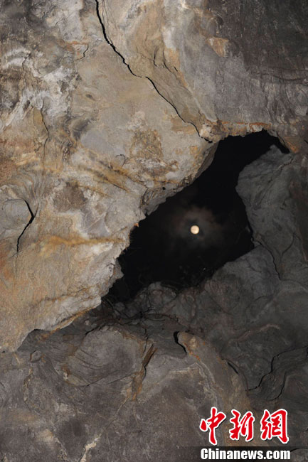 12月22日凌晨,廣東肇慶七星巖“出米洞”景區(qū)冬至日出現(xiàn)“頭上有明月,腳下無暗影”月光垂照山洞的奇趣天文地理景象,吸引了北京、廣州、肇慶三地天文地理氣象科研人員。中國科學(xué)院國家天文臺研究員張濟同稱,月亮垂照出米洞奇觀必須符合滿月時分,冬至日,月亮必須到達北緯23°08′上空三個條件。他說,下一次出米洞看月光垂照要等19年,本世紀100年僅可能看到6次這樣的奇觀。圖為冬至日凌晨的端州出米洞上空的月亮。