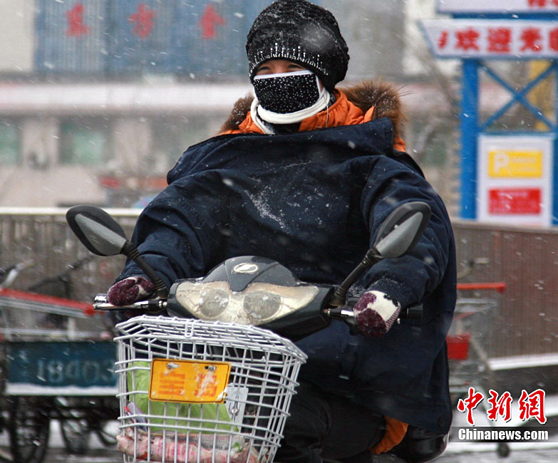 12月23日,中央氣象臺繼續(xù)發(fā)布寒潮藍(lán)色預(yù)警,受冷空氣影響,中國中東部大部地區(qū)氣溫普遍下降6~10℃,河北壩上地區(qū)達(dá)到12~14℃的降溫。圖為河北一位“全副武裝”出行的市民。中新社記者 翟羽佳 攝
