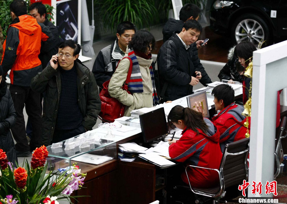 12月23日夜,北京民眾連夜排隊購置新車。當日下午,北京市人民政府新聞辦公室召開“北京交通改善措施”新聞發(fā)布會,正式公布了《關于進一步推進首都交通科學發(fā)展 加大力度緩解交通擁堵工作的意見》,將實行綜合措施治理交通擁堵。其中,2011年度北京小客車總量額度指標控制為24萬個,牌照通過搖號無償分配的政策成為民眾關注的焦點。中新社記者 富田 攝