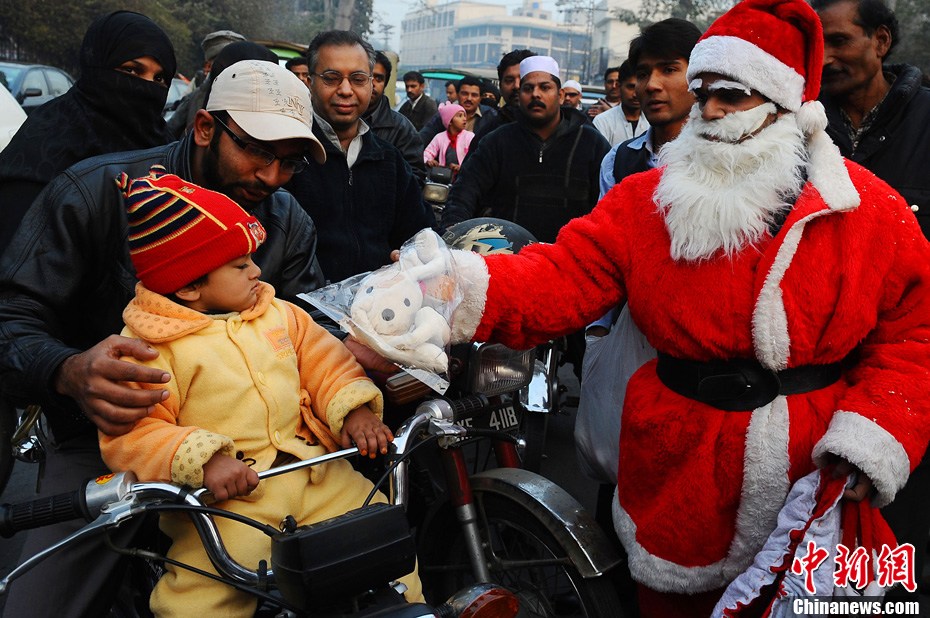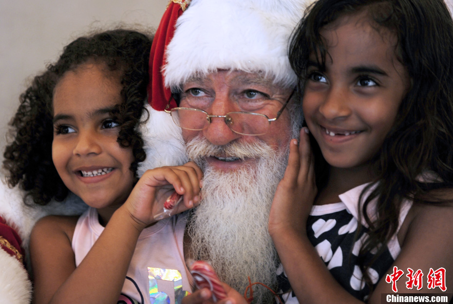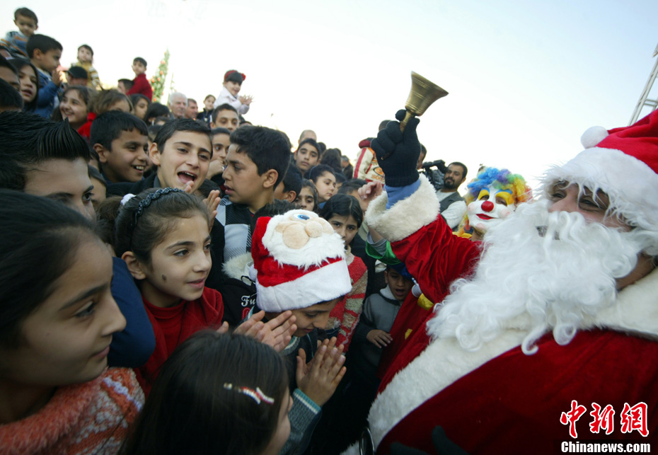 當(dāng)?shù)貢r(shí)間12月24日,伊拉克庫(kù)爾德人聚集地圣誕老人為孩子們送去歡樂(lè)。