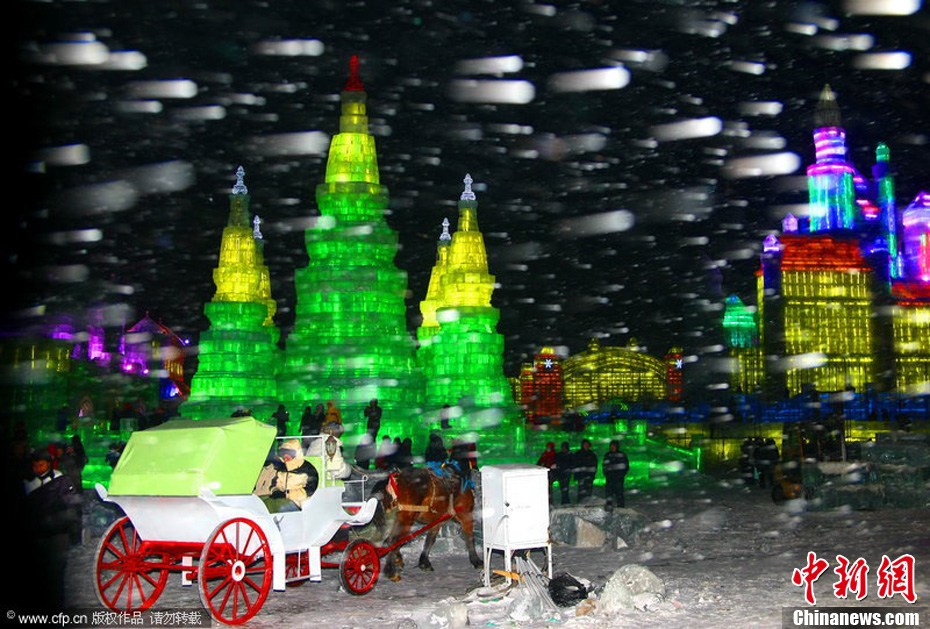 2010年12月25日,哈爾濱,第十二屆哈爾濱冰雪大世界試開(kāi)園,首日迎接中外游客2萬(wàn)余人。圖片來(lái)源:CFP/視覺(jué)中國(guó)