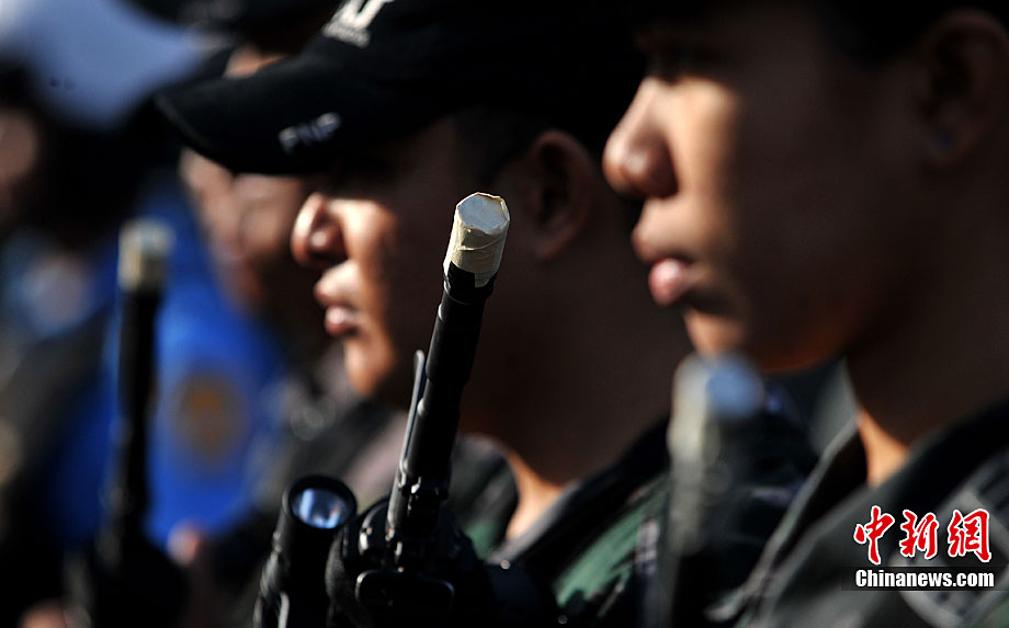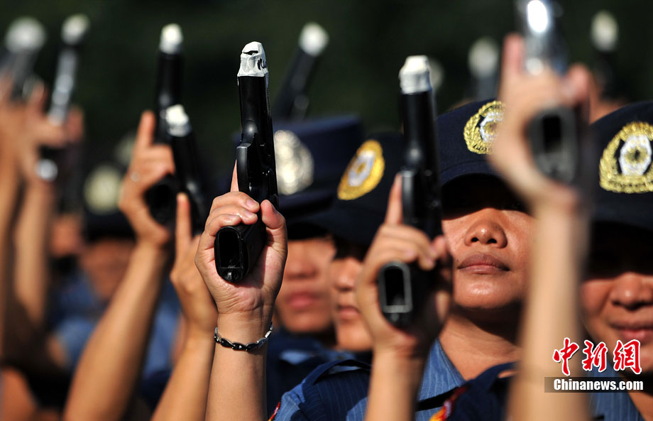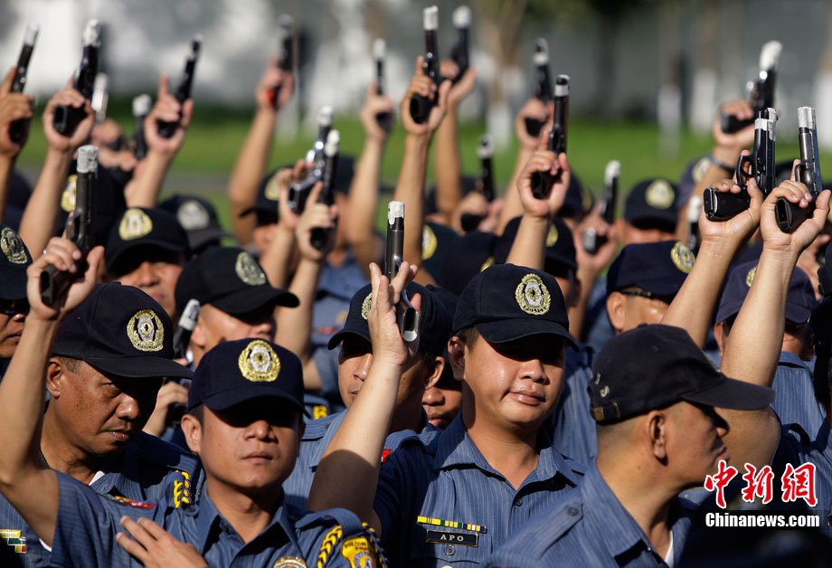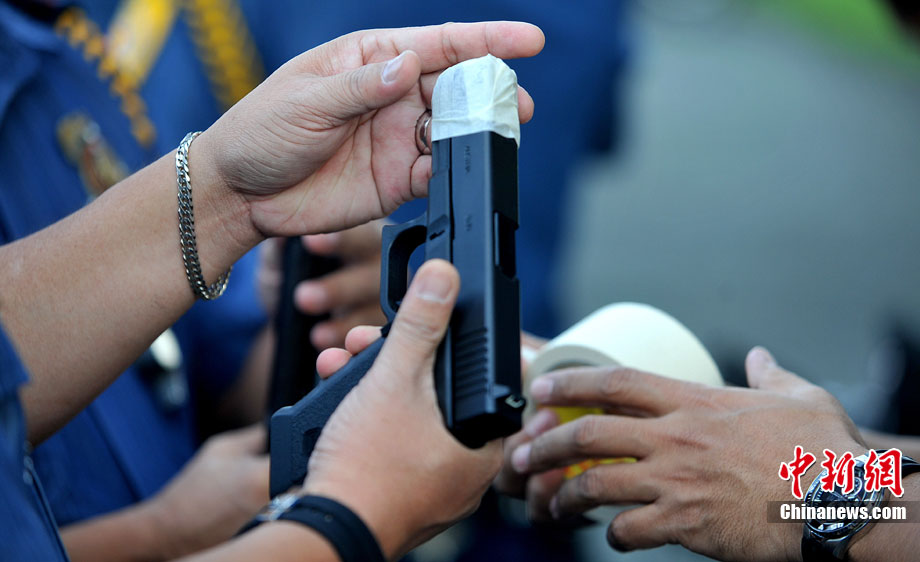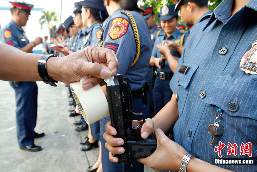12月27日,菲律賓首都馬尼拉北部的奎松市郊區(qū),菲律賓警察正在舉行封槍儀式。菲律賓警方每年都會(huì)在新年來臨之際舉行封槍儀式,其目的是為了防止警務(wù)人員在慶祝新年時(shí)胡亂開槍。