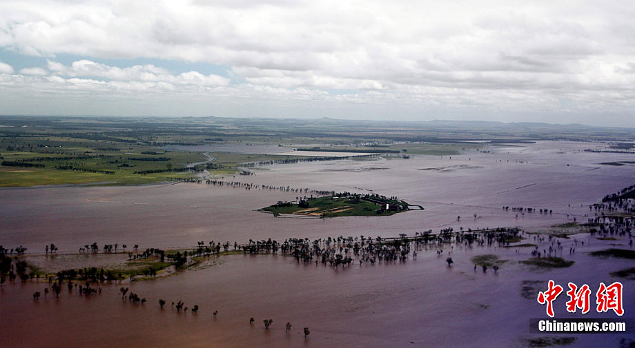 當(dāng)?shù)貢r(shí)間12月28日,受熱帶低壓“塔莎”(TASHA)帶來(lái)大量降雨的影響,澳大利亞昆士蘭州的許多城鎮(zhèn)被洪水圍困,。昆士蘭州的欽奇拉遭遇數(shù)十年來(lái)最為嚴(yán)重的暴雨襲擊,降雨量一夜之間超過(guò)100毫米,使得多戶人家被迫疏散。圖為航拍的受災(zāi)地區(qū)。
