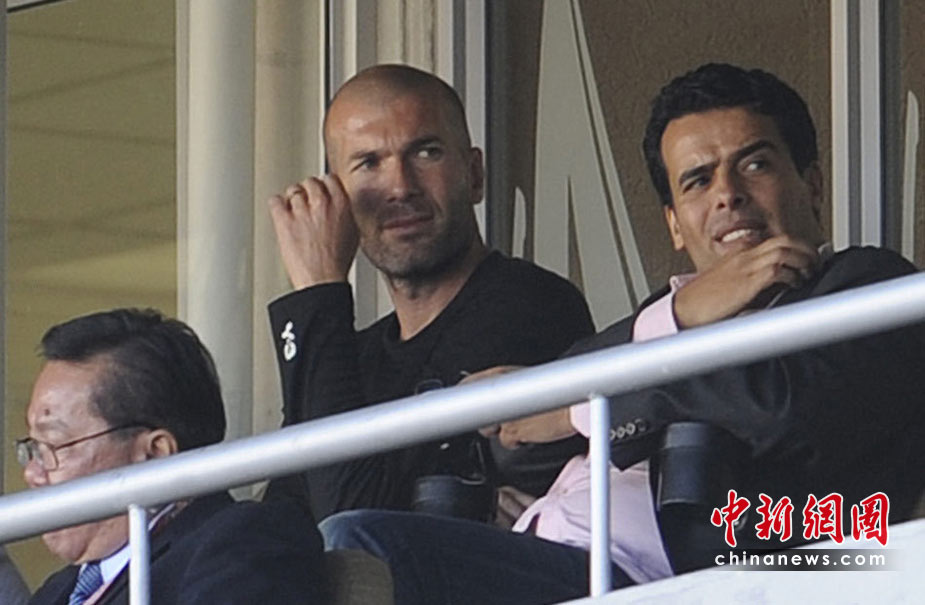 法國球星齊達(dá)內(nèi)現(xiàn)場看球。