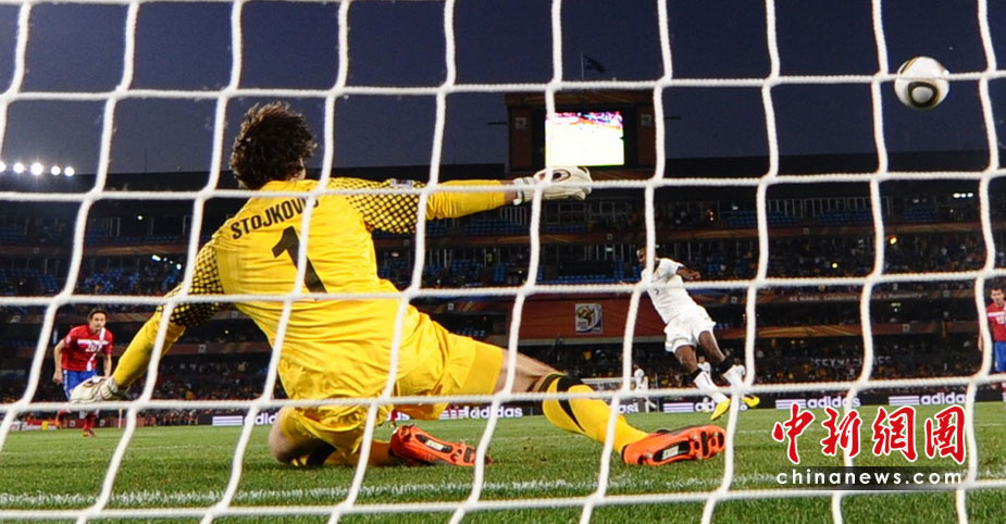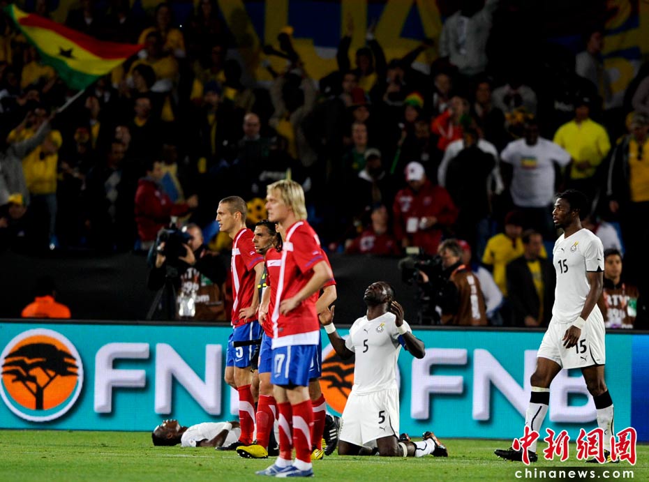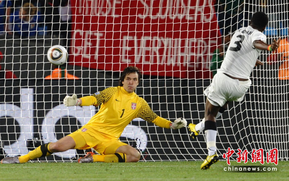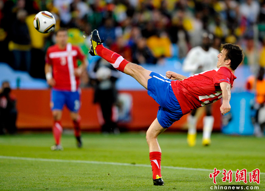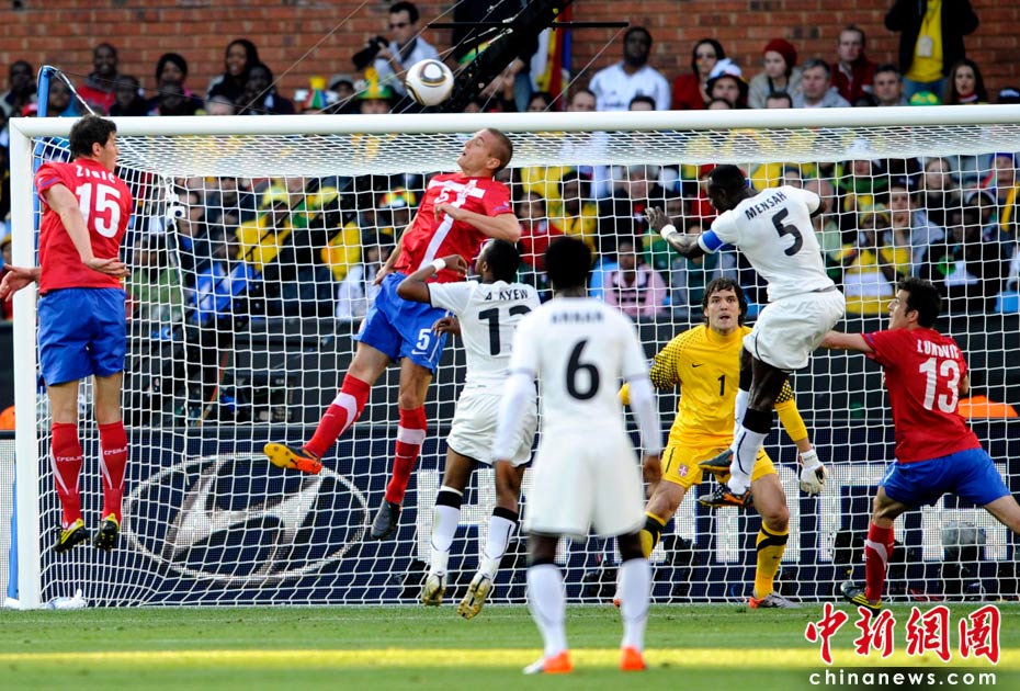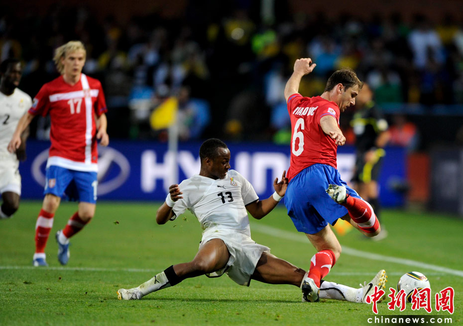6月13日,南非世界杯D組小組賽在比勒陀利亞洛夫托斯球場舉行,在上半場比賽中塞爾維亞與加納隊(duì)展開激烈爭奪。