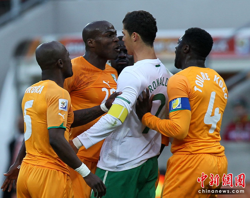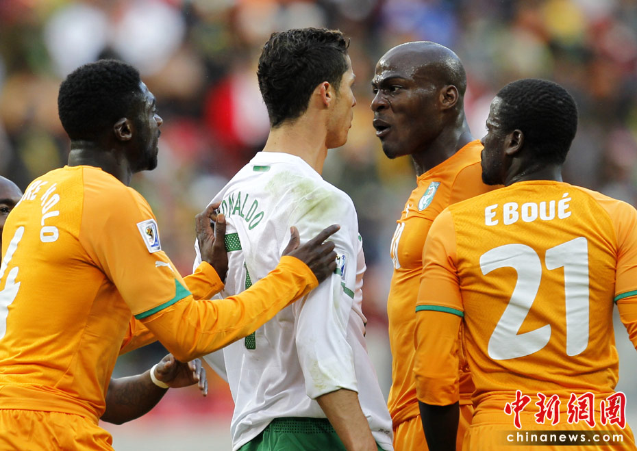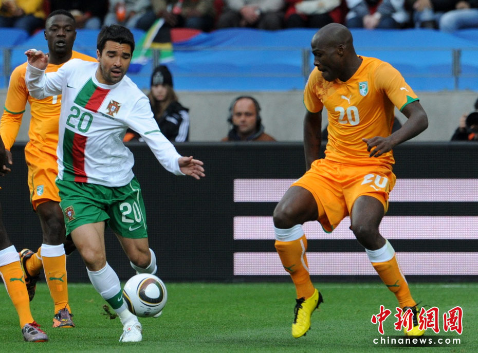 北京時(shí)間6月15日晚22點(diǎn),第19屆世界杯小組賽G組打響首輪爭(zhēng)奪?铺氐贤哧(duì)在伊麗莎白港的納爾遜-曼德拉灣球場(chǎng)迎戰(zhàn)歐洲勁旅葡萄牙隊(duì)。C·羅上半場(chǎng)擊中門(mén)柱成為本場(chǎng)比賽唯一亮點(diǎn),科特迪瓦“魔獸”德羅巴未首發(fā)、。直到比賽進(jìn)行到65分鐘,德羅巴才被替換上場(chǎng)。最終經(jīng)過(guò)90分鐘悶戰(zhàn),兩隊(duì)0-0握手言和。