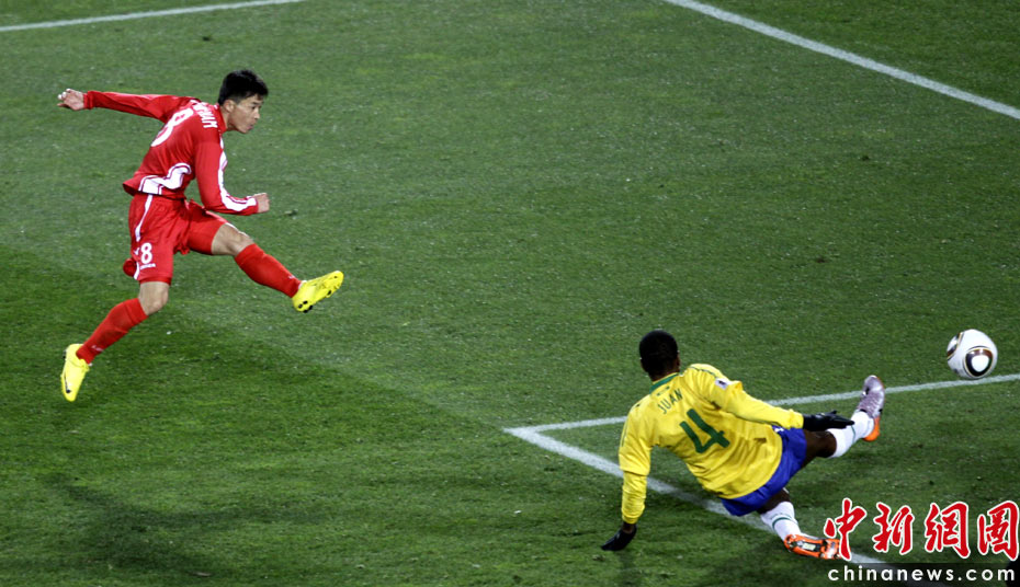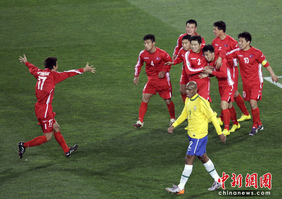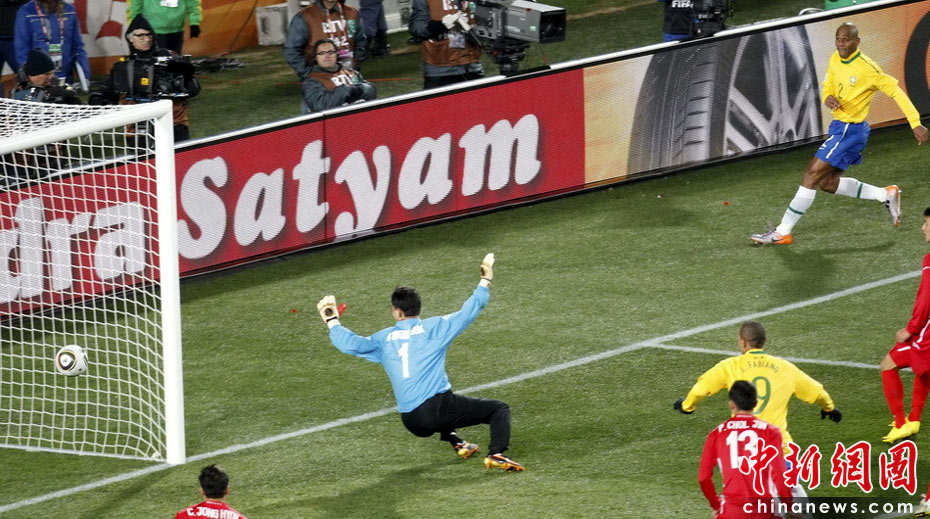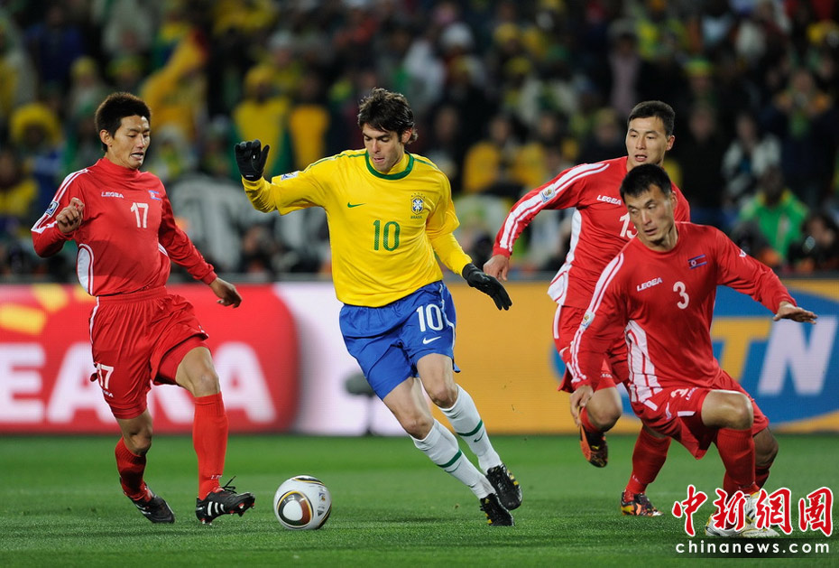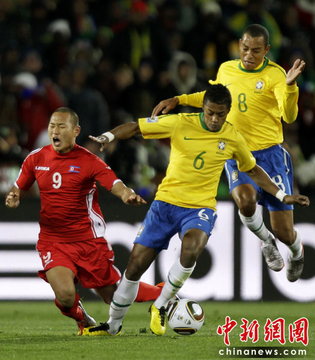 北京時間6月16日凌晨2:30進行的一場世界杯小組賽G組的較量中,巴西隊迎來了朝鮮隊。最終經(jīng)過90分鐘激戰(zhàn),巴西隊2-1擊敗朝鮮,贏得南非世界杯開門紅。中新社記者 廖攀 攝