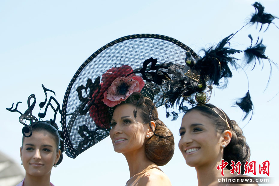 英國阿斯科特皇家賽馬會日前在倫敦開幕。已經(jīng)有百年歷史的阿斯科特皇家賽馬會,成了英國有名的帽子盛會。各界名媛著造型奇特創(chuàng)意十足的帽子亮相,爭奇斗艷吸引眼球。