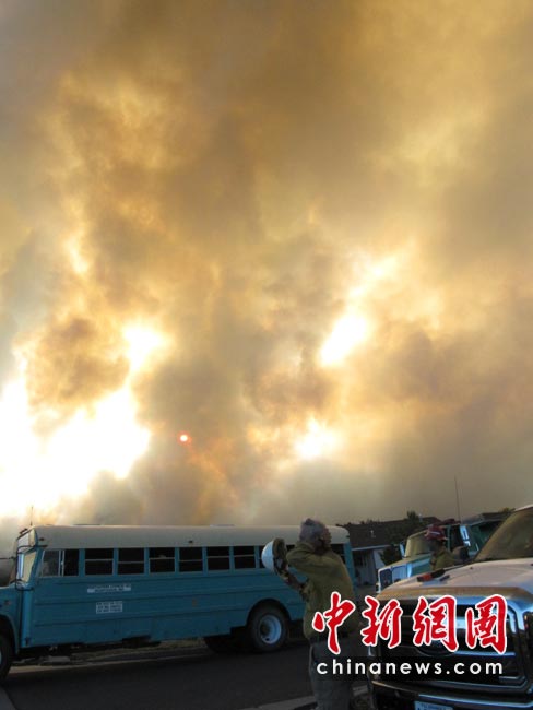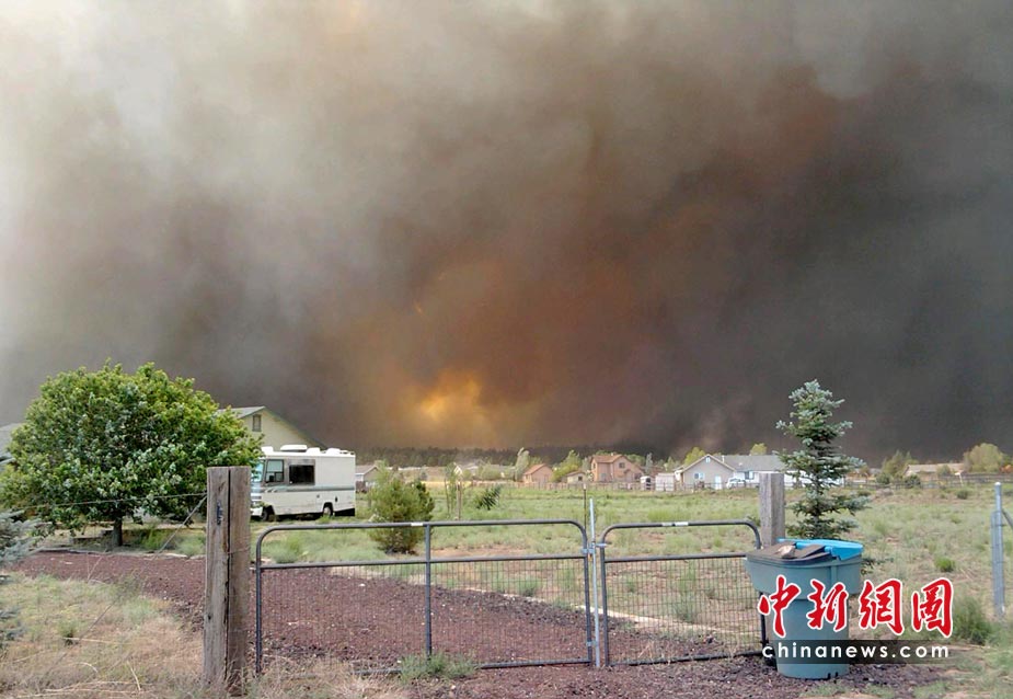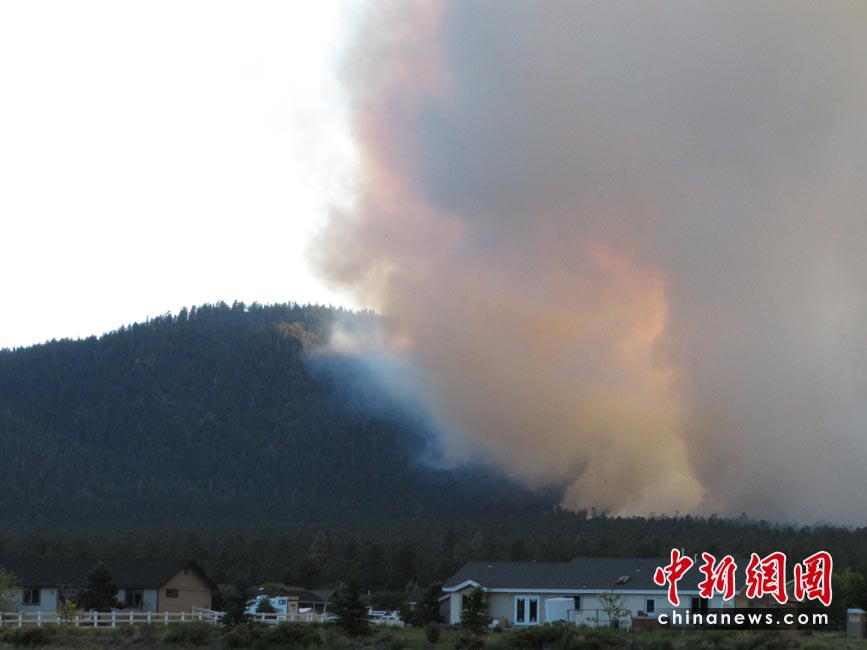 美國亞利桑那州弗拉格斯塔夫(Flagstaff)20日發(fā)生森林火災,火勢蔓延至三個地區(qū),當?shù)鼐用癖黄仁枭ⅰ?/p>