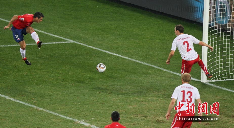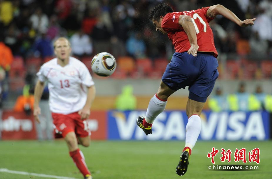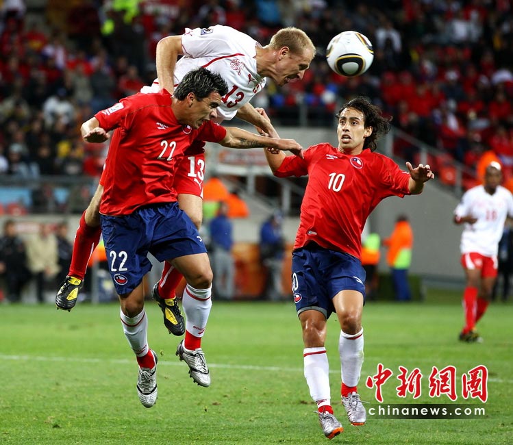 6月21日,世界杯H組第2輪首戰(zhàn)在伊麗莎白港納爾遜-曼德拉灣球場展開較量。瑞士中場貝赫拉米連續(xù)肘擊兩人,被紅牌罰下后,以十人應(yīng)戰(zhàn)的他們在下半場被智利隊(duì)岡薩雷斯打入一球,以0-1告負(fù)。
