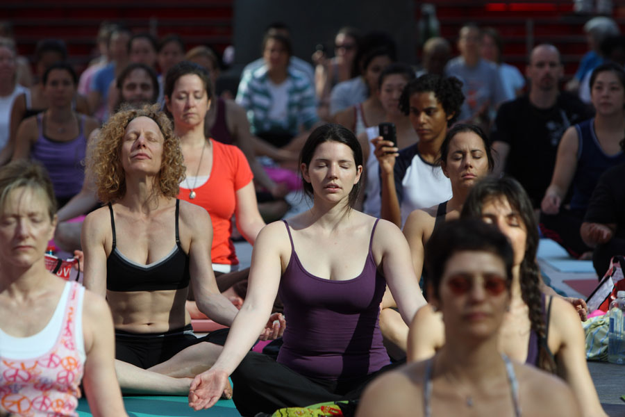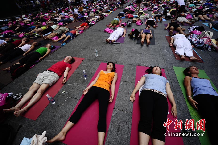 數(shù)千人紐約時報廣場做瑜伽迎接夏至