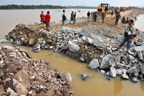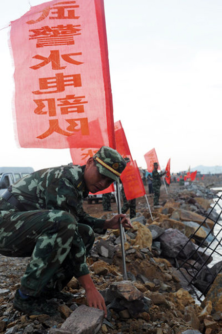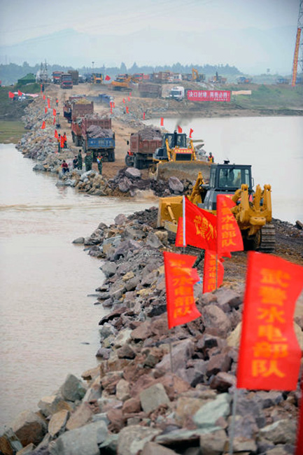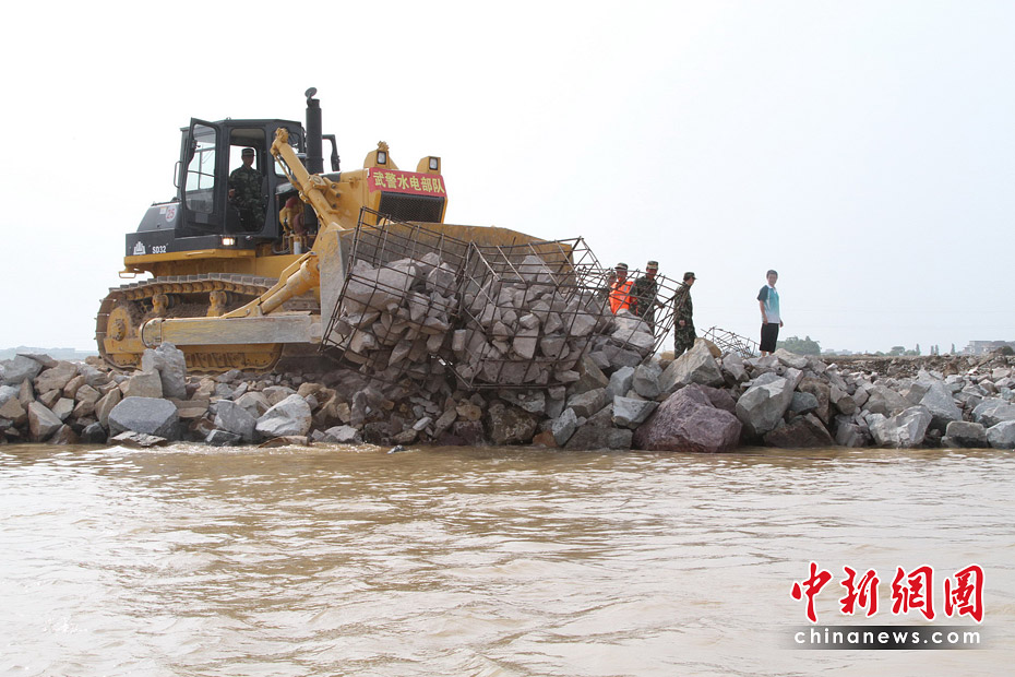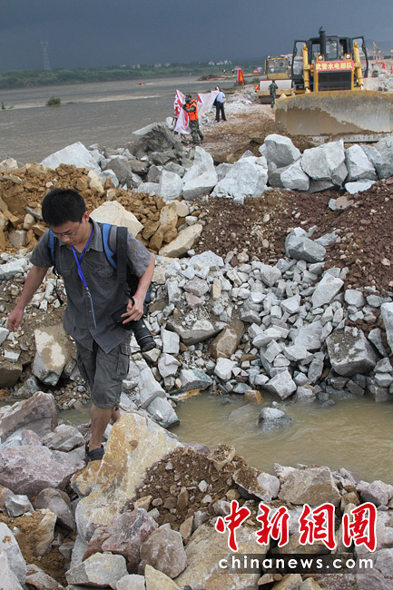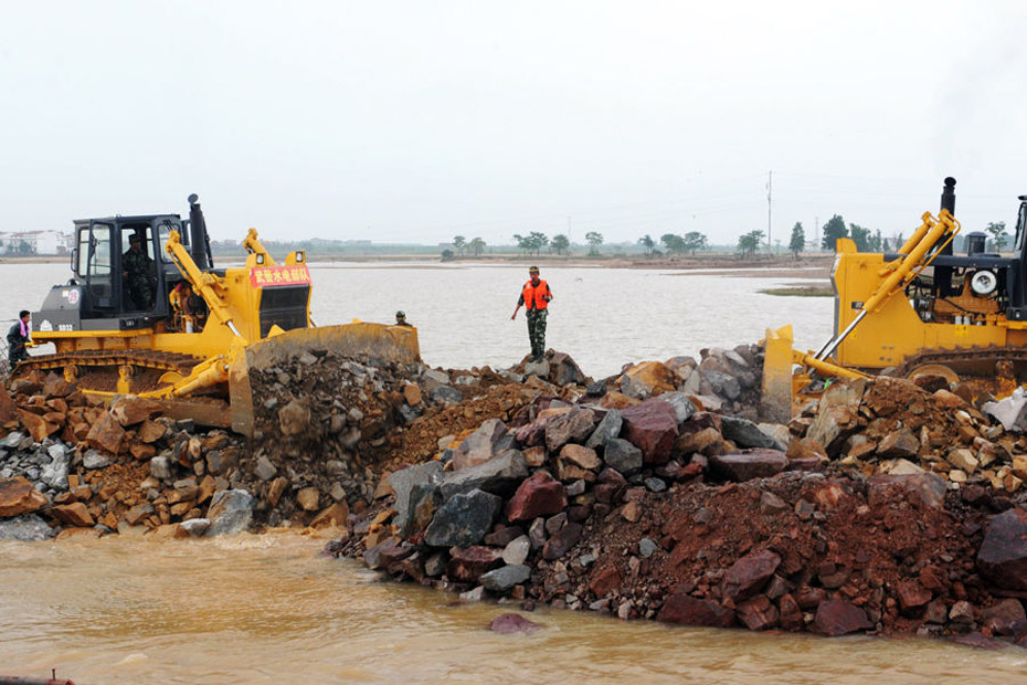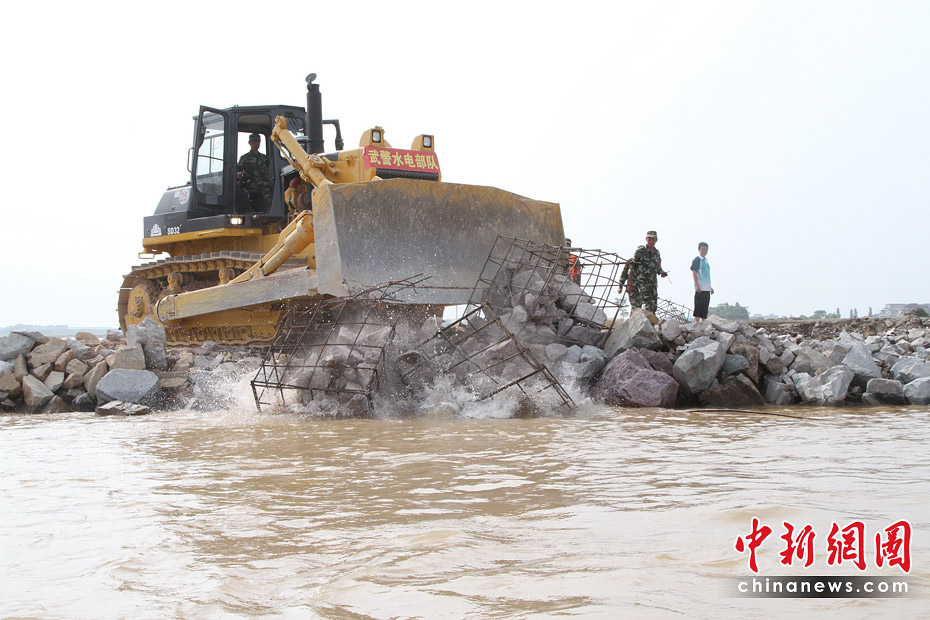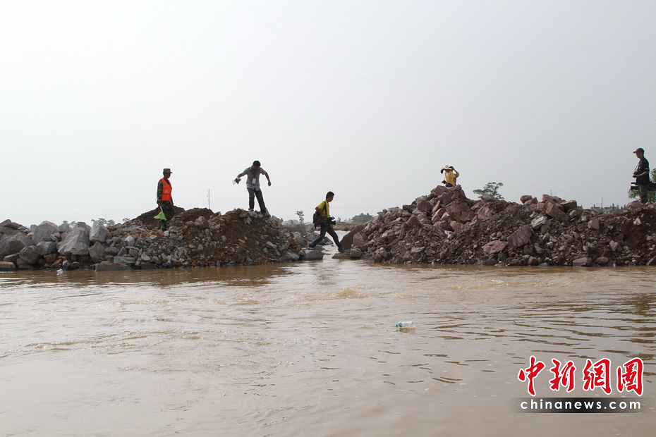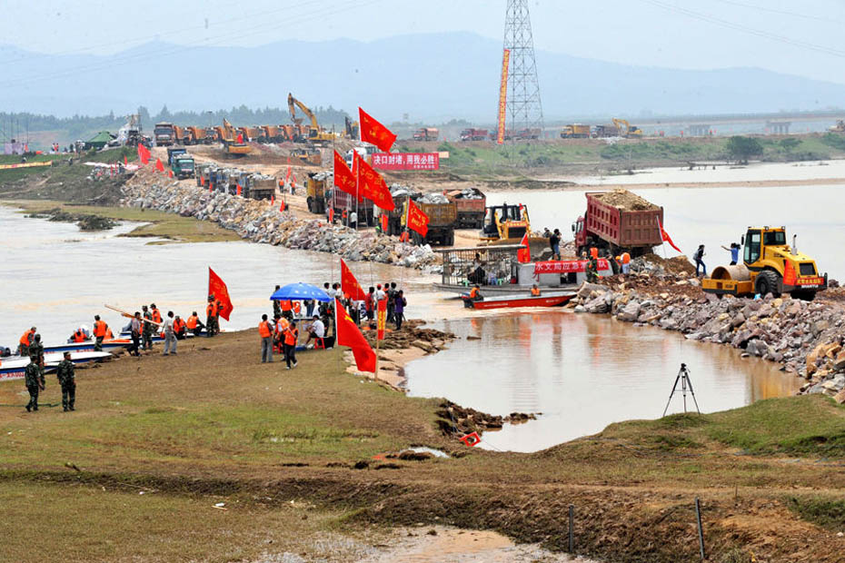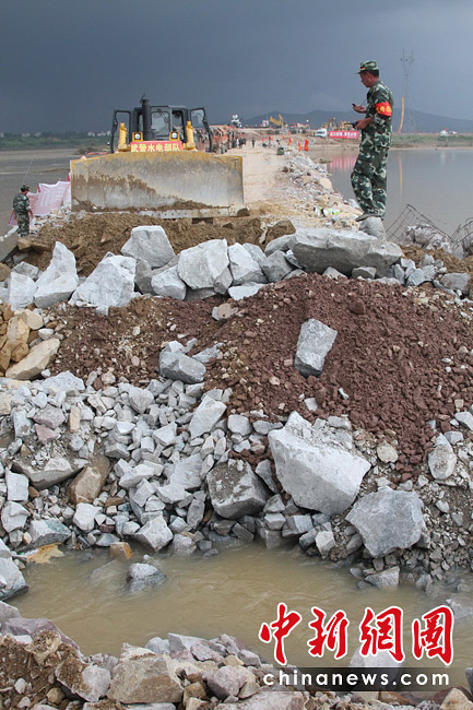 6月27日,18時16分,隨著最后一車土石投入河道,決口6天的江西撫州唱凱大堤終于合龍,恢復(fù)了它完整的堤身。原計劃6天完成的決口封堵任務(wù)提前3天完成。張見悅 攝